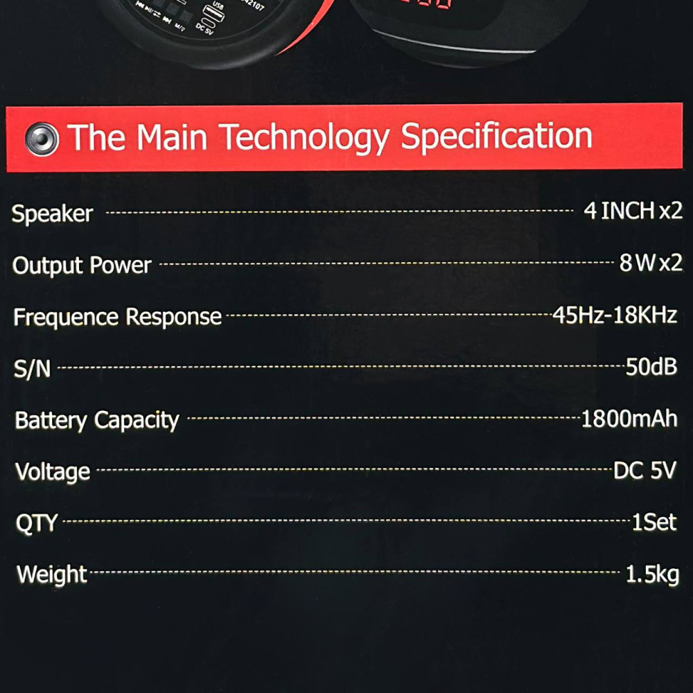 Основні характеристики: BT/USB/TF/AUX/MIC/FM/RGB-підсвічування