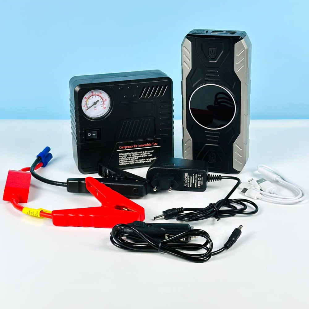 УЦІНКА Автомобільний пускозарядний пристрій-компресор QY19 Jump Starter 39800mAh QС3.0 2USB+Type-C