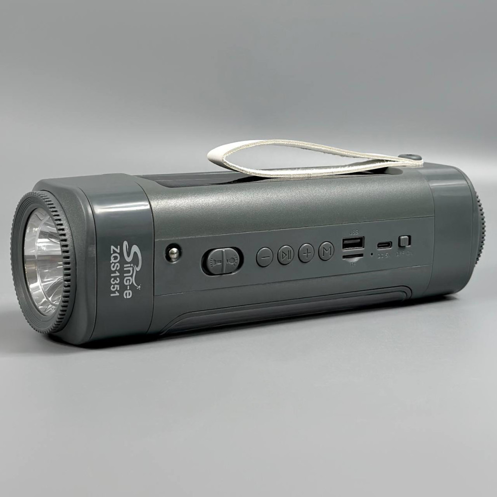 УЦІНКА Колонка-радіо Sing-e ZQS1351 із сонячною батареєю + ліхтар 8W, 4000mAh (24,0*7,0*7,0 см) (Дефект в описі)