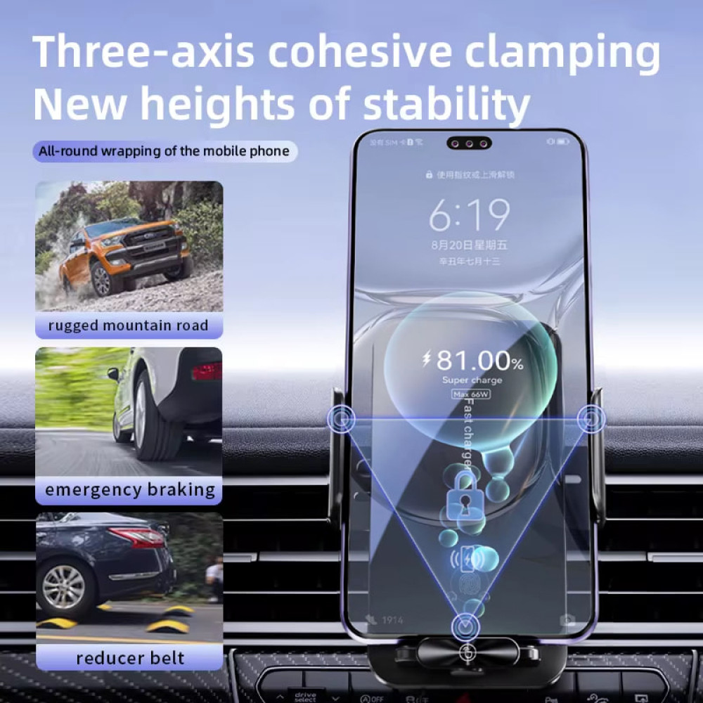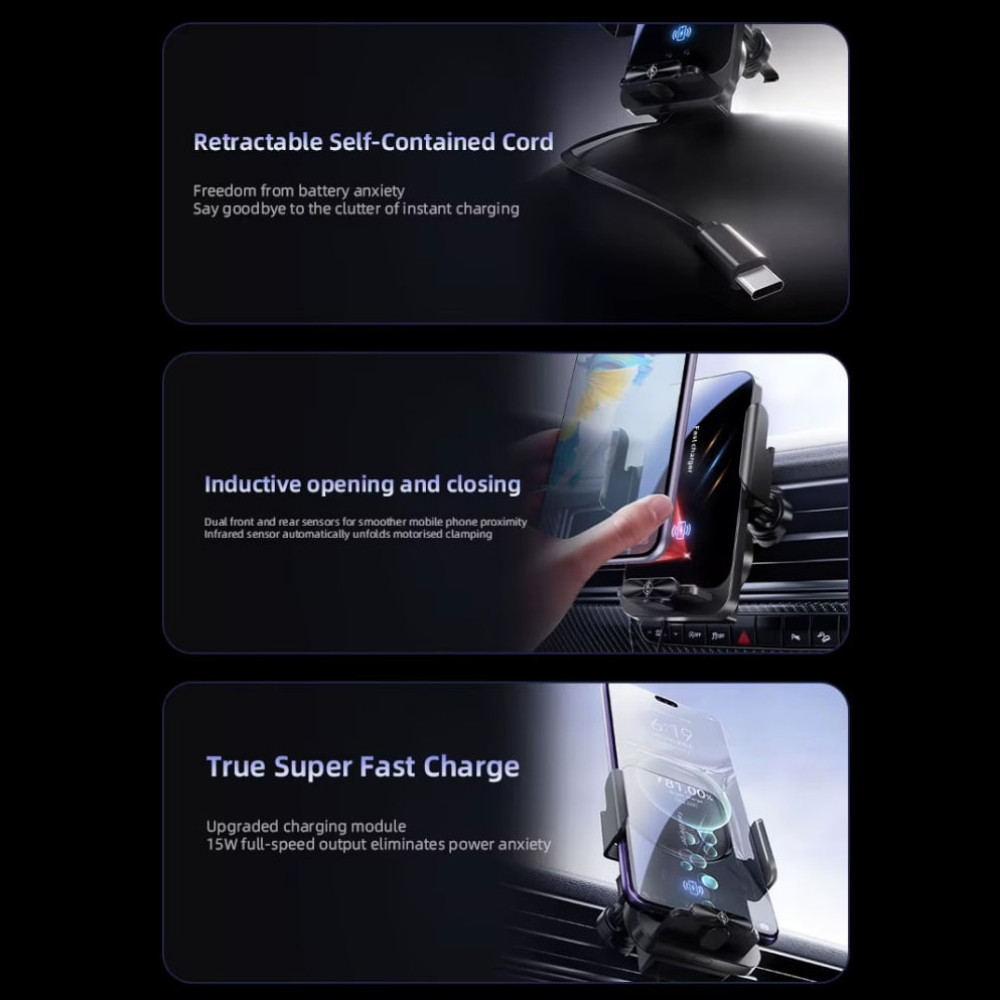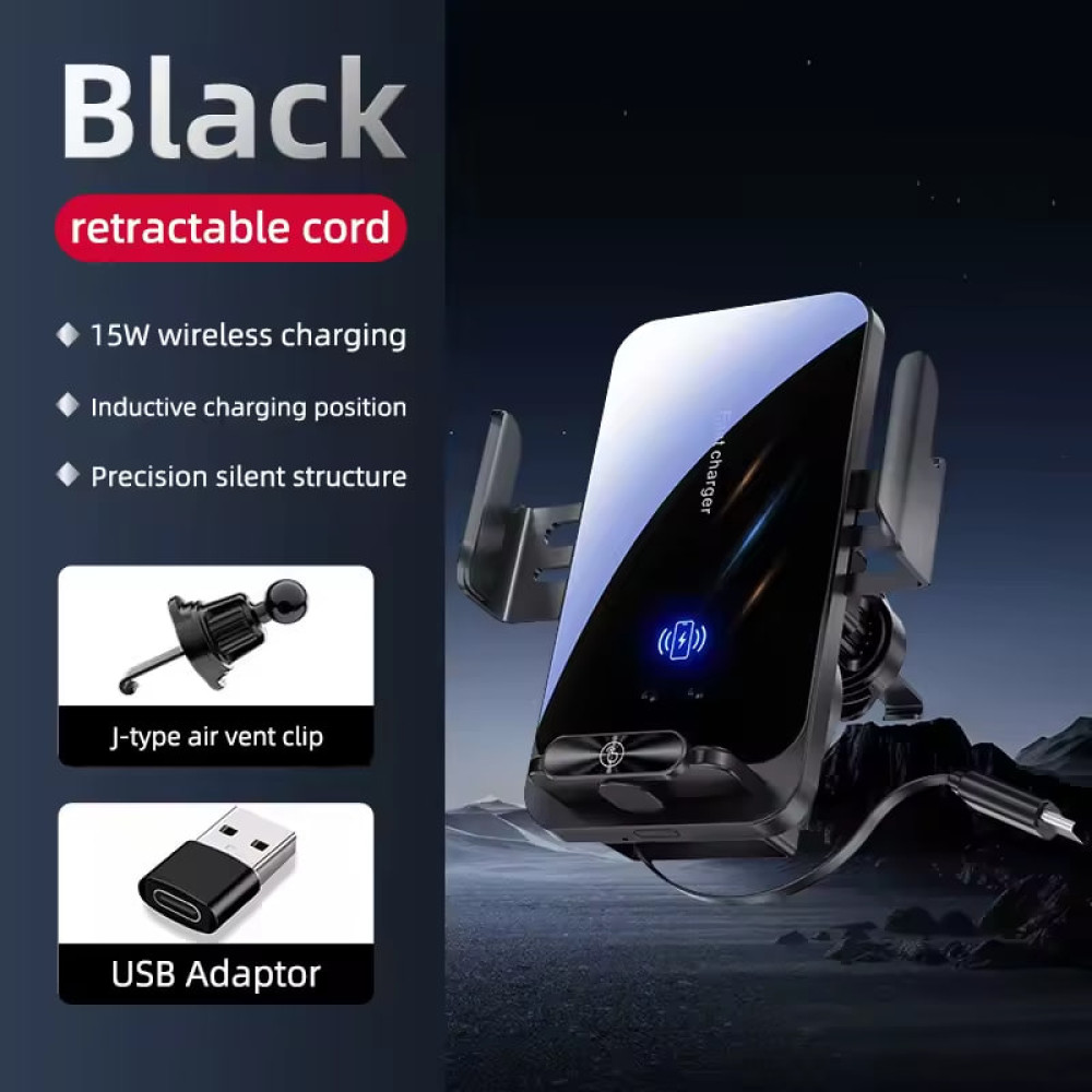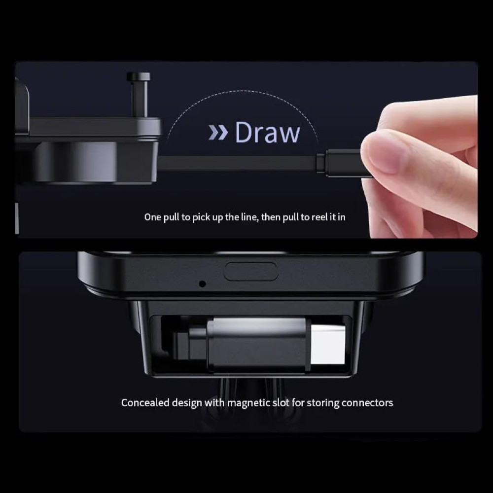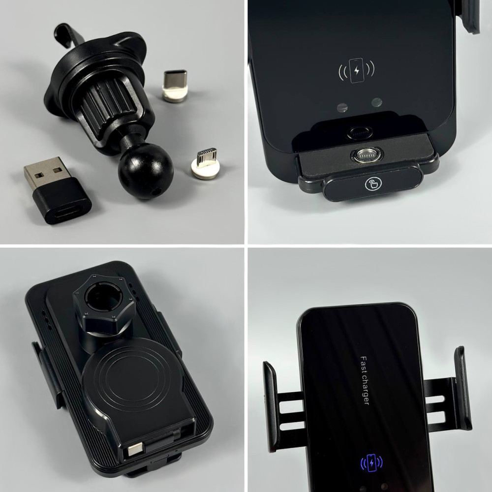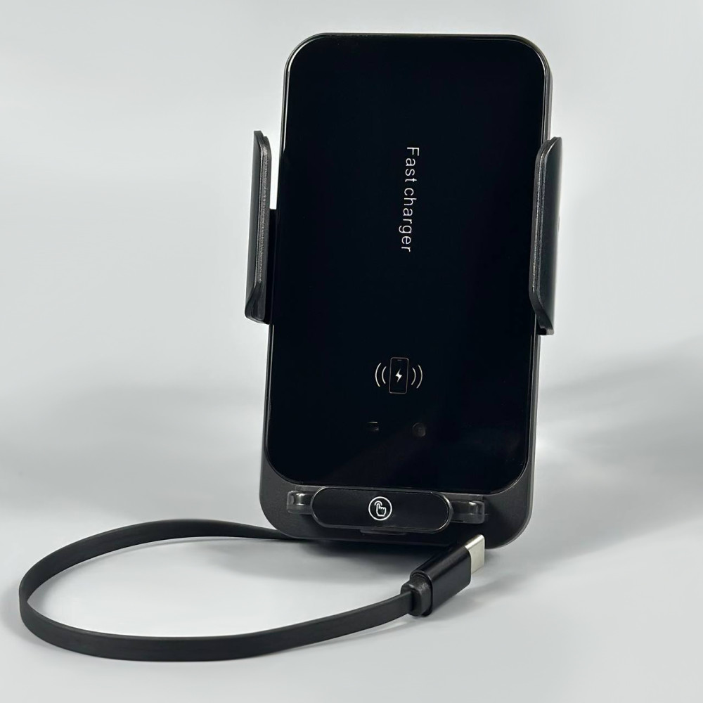 Holder SD06 з висувним кабелем Type-C та бездротовою зарядкою 15W (+конектори Micro, Type-C)