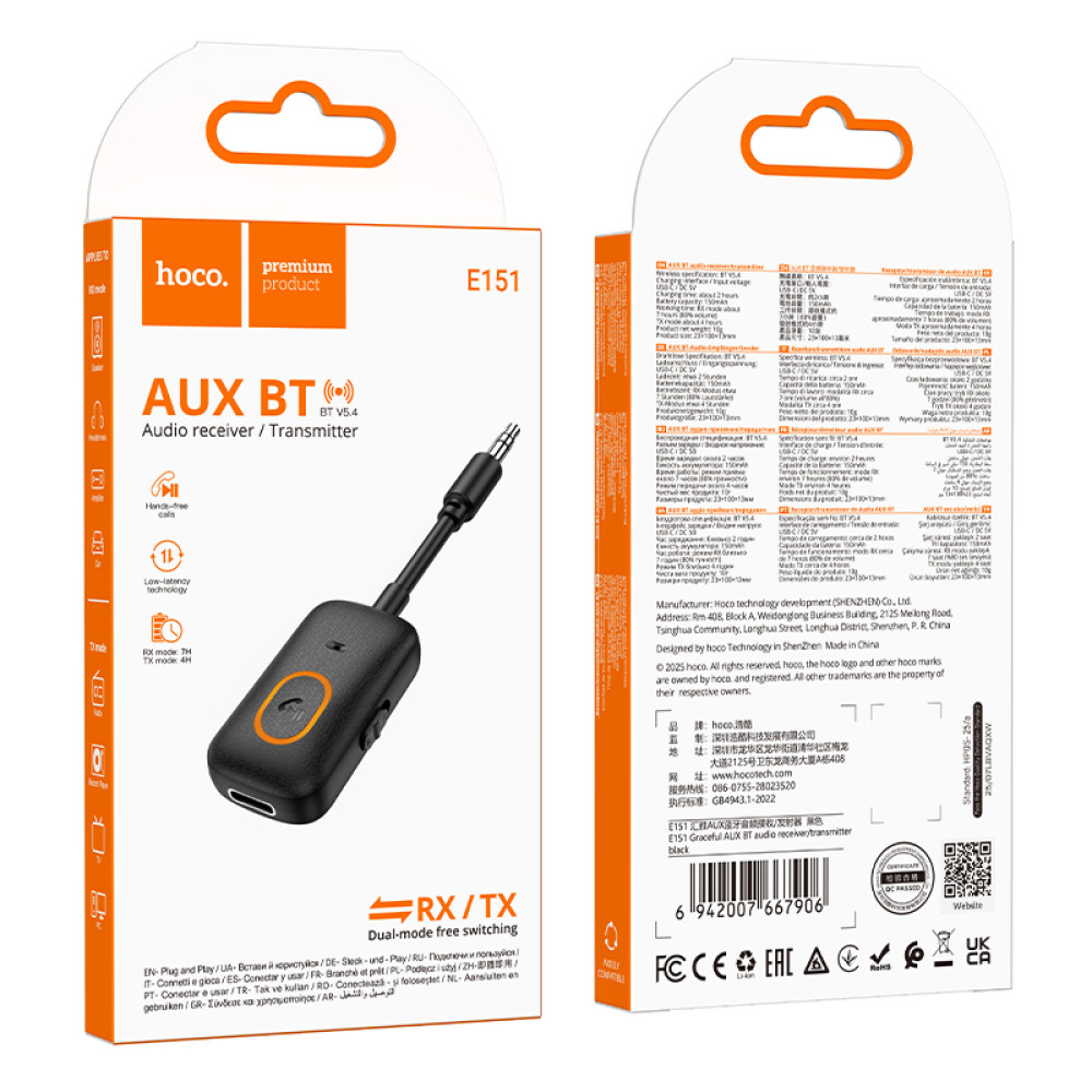 Ресивер (Бездротовий приймач) Hoco E151 Graceful AUX
