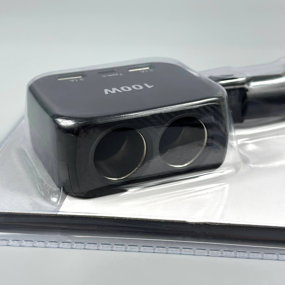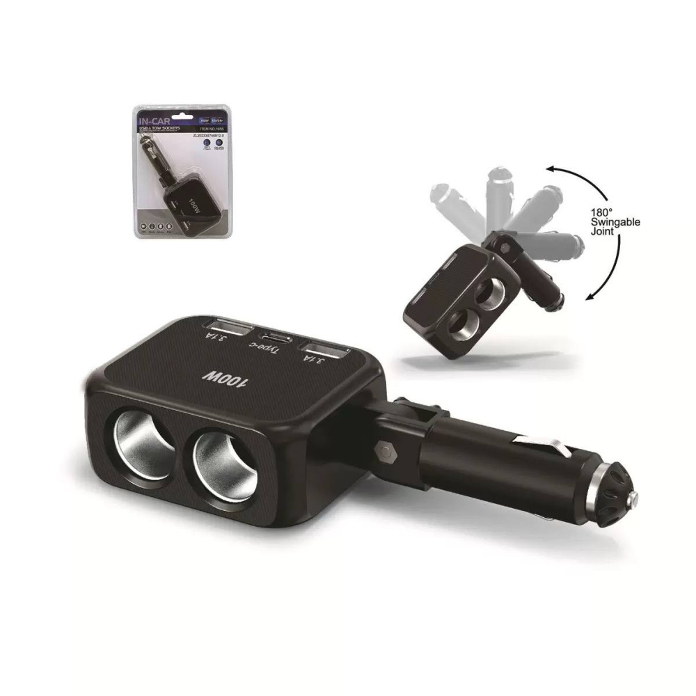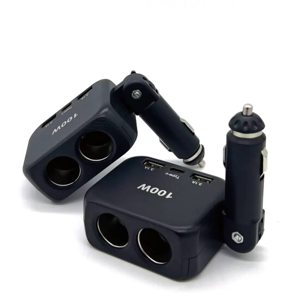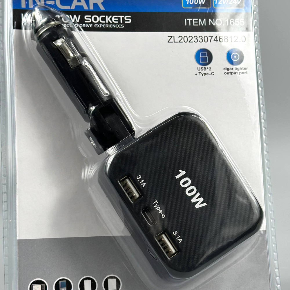 Розгалужувач прикурювача in-car 1655 100W (2 прикурювачі +2USB+Type-C, DC12-24V)