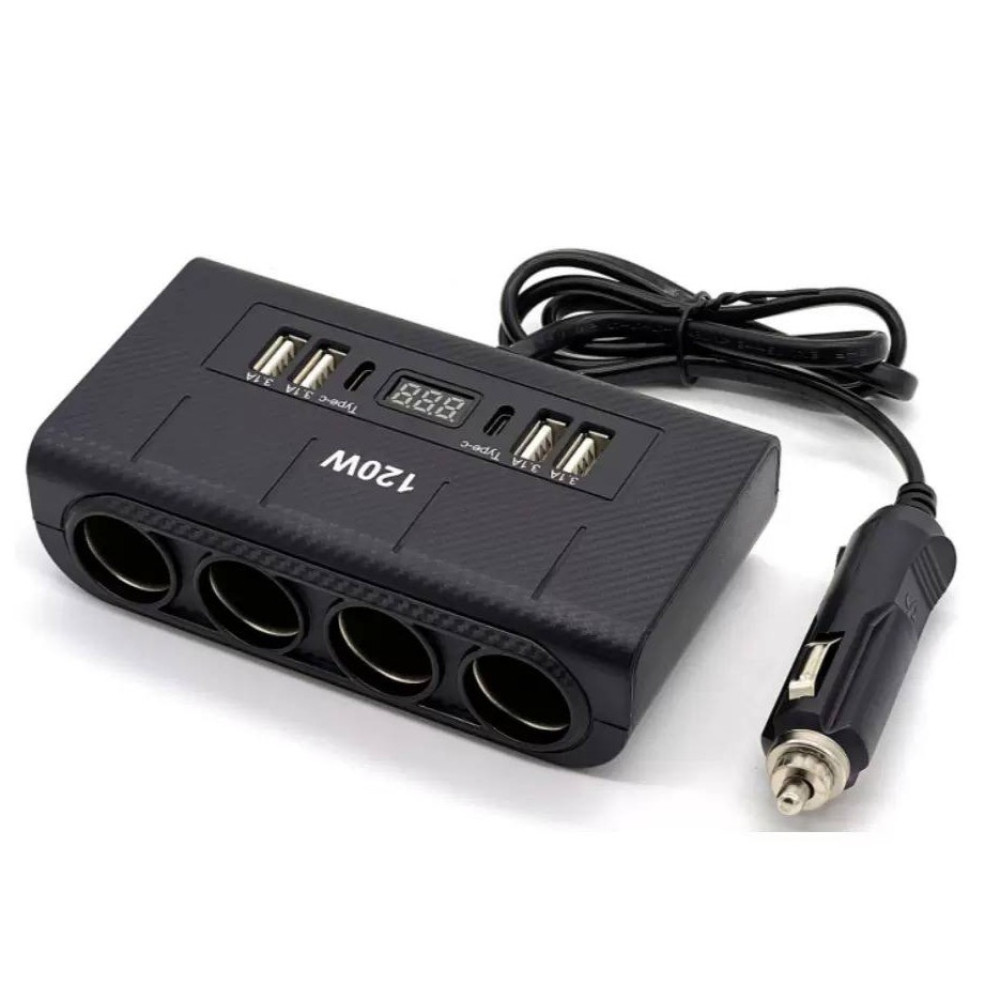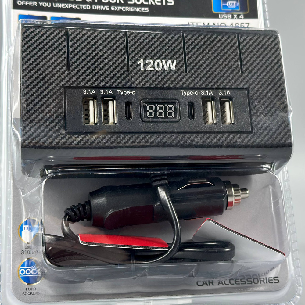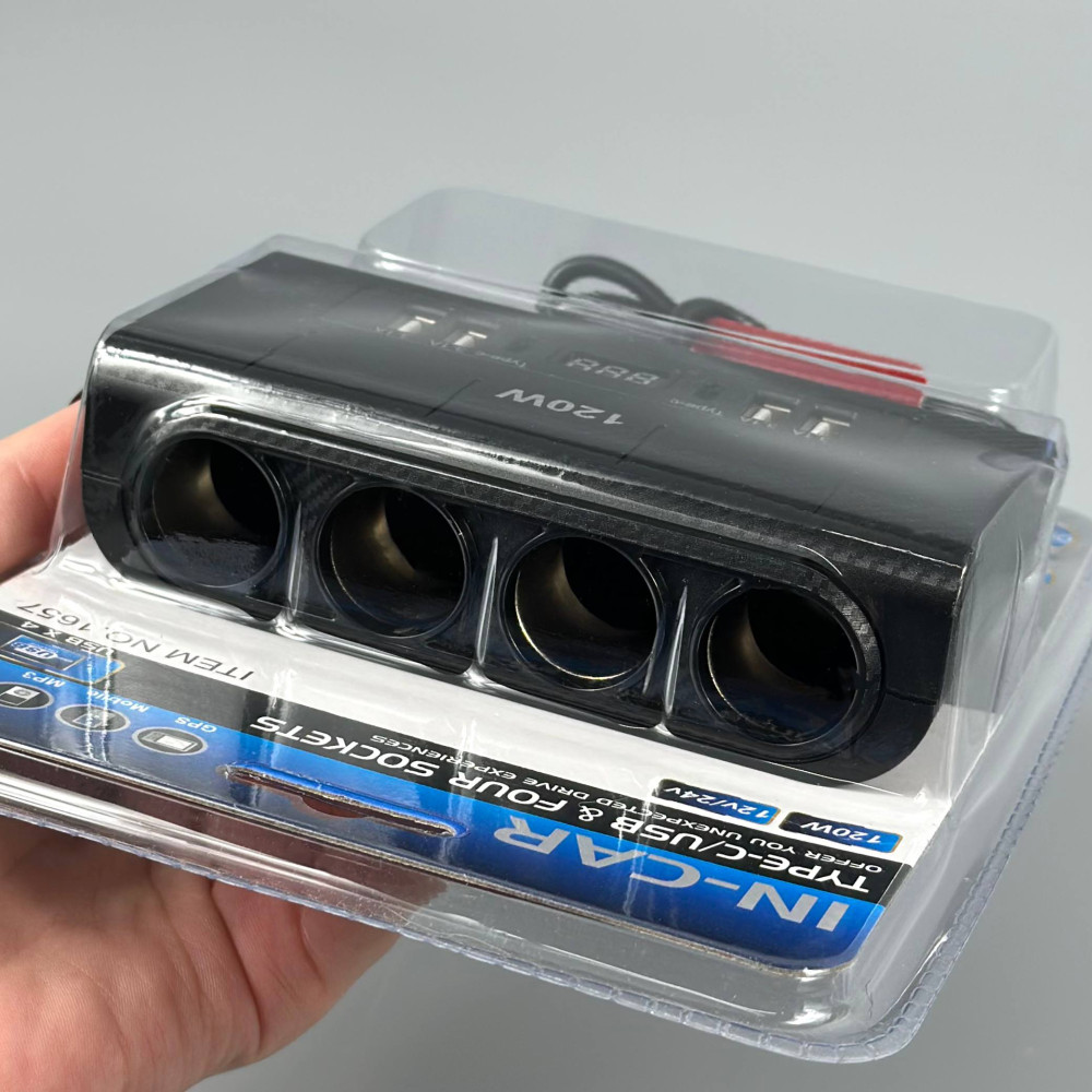 Розгалужувач прикурювача in-car 1657 120W (4 прикурювачі +4USB + 2Type-C, DC12-24V)