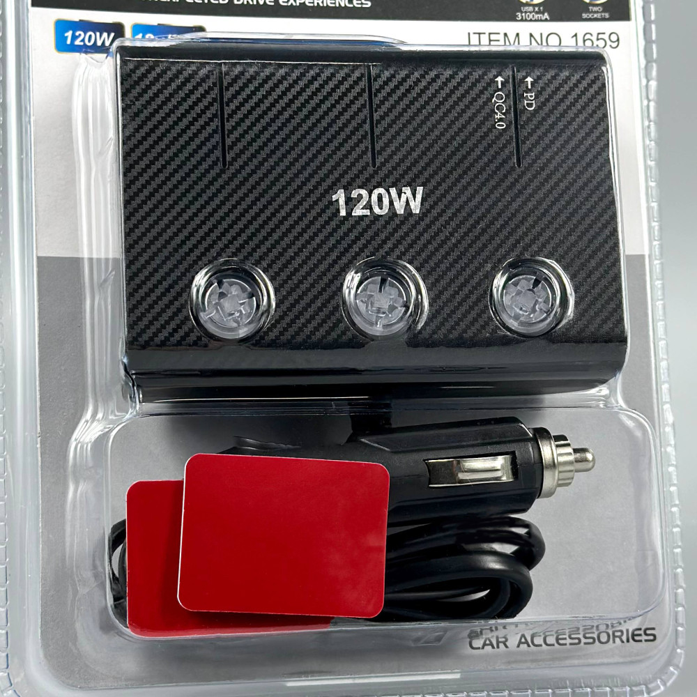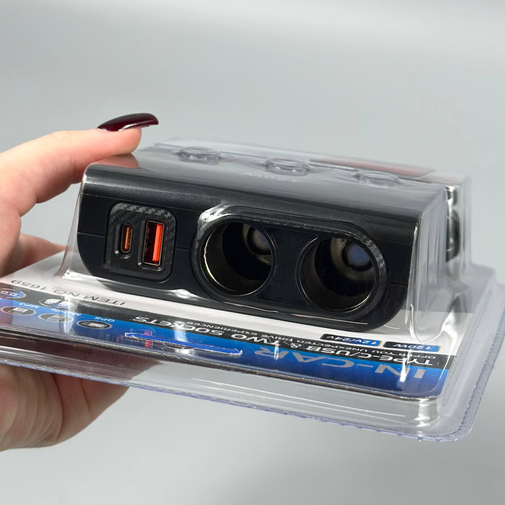 Розгалужувач прикурювача in-car 1659 120W (2 прикурювачі +QC4.0+PD3.0, DC12-24V)
