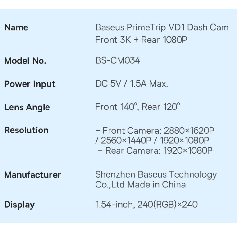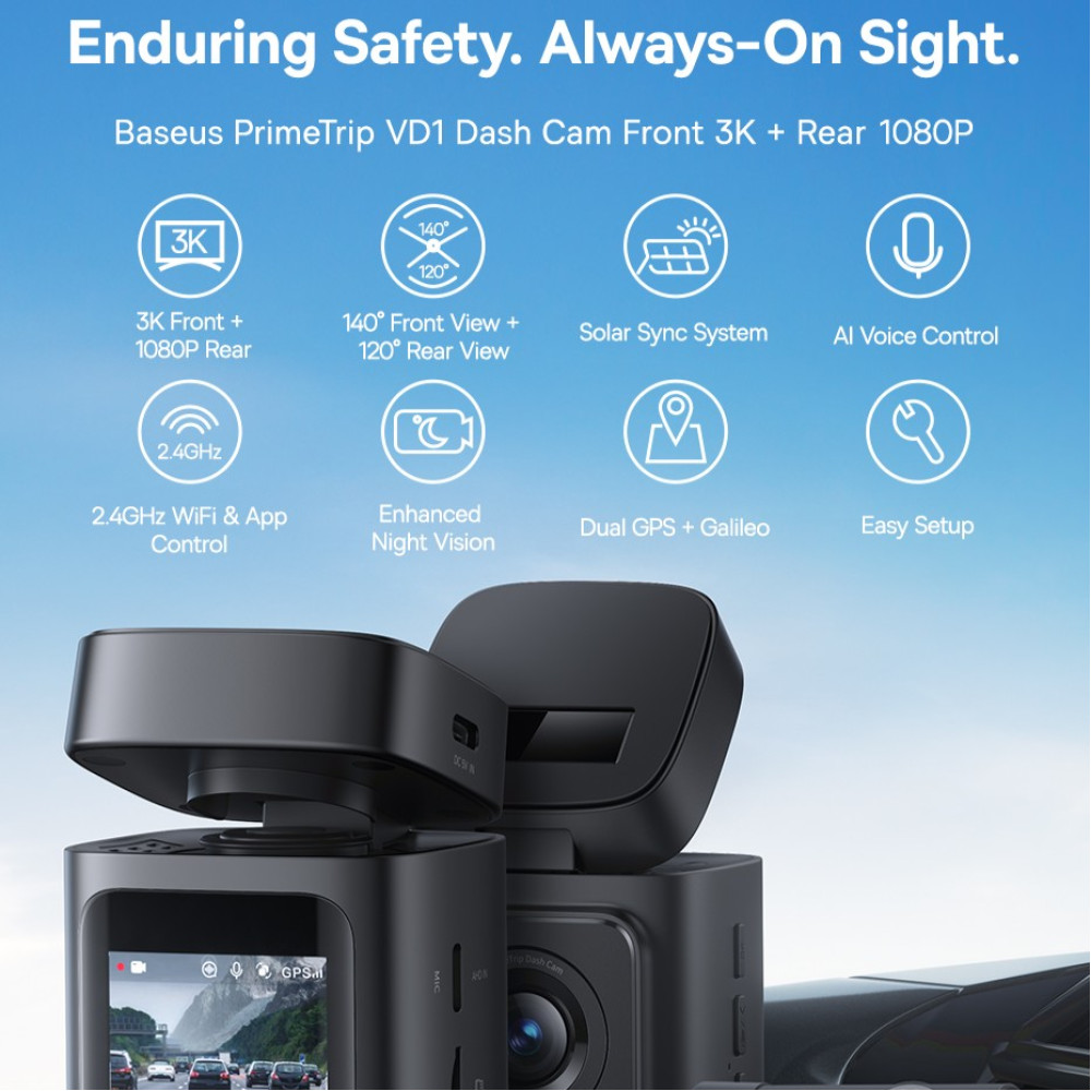 Відеореєстратор Baseus PrimeTrip VD1 Dash Cam 3K+1080p (C0115900) (Гарантія на перевірку 6 міс.)