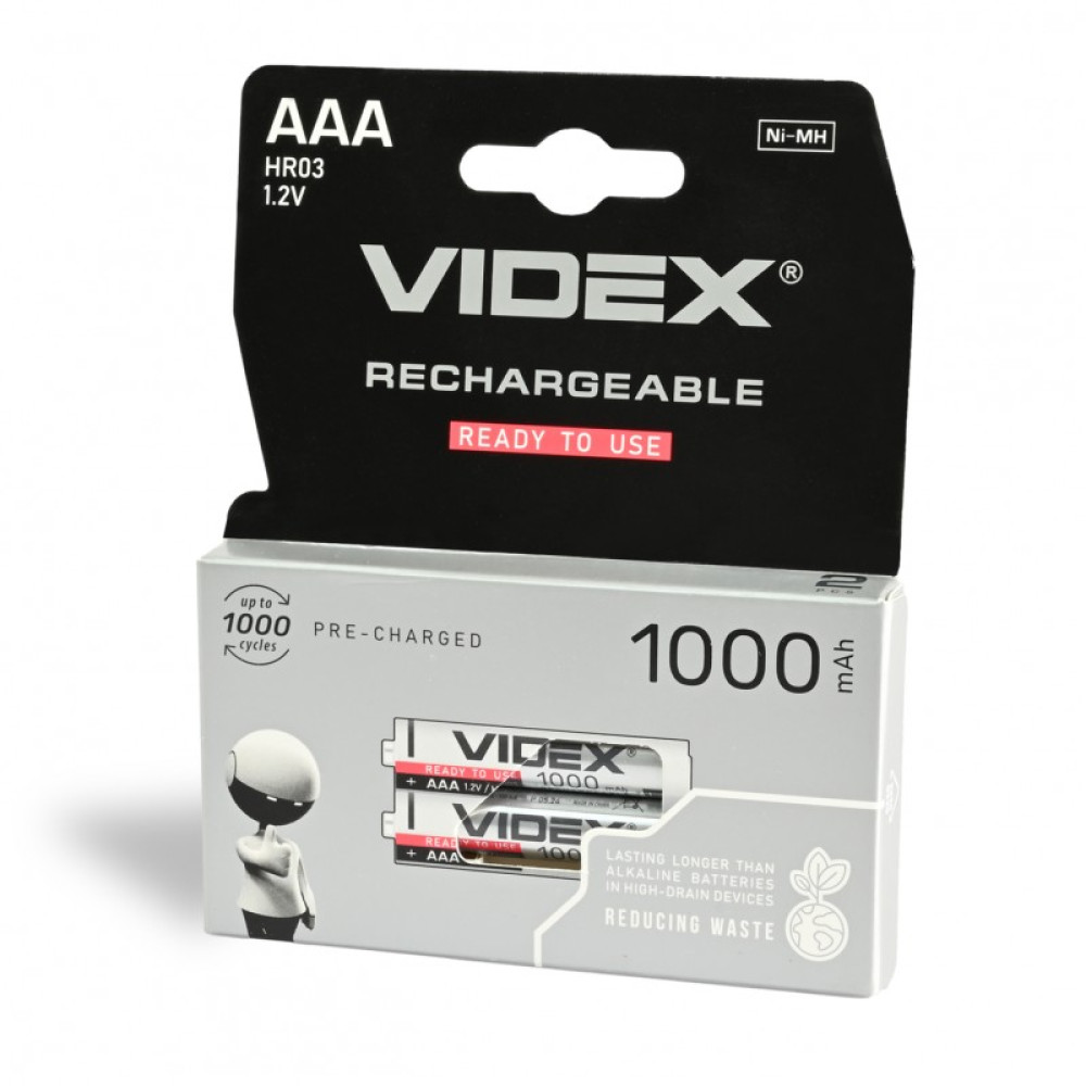Акумулятор Videx Rechargeable R03, AAA 1000mAh 1.2V (HR03, size AAA, NiMN) BOX (2 шт.)