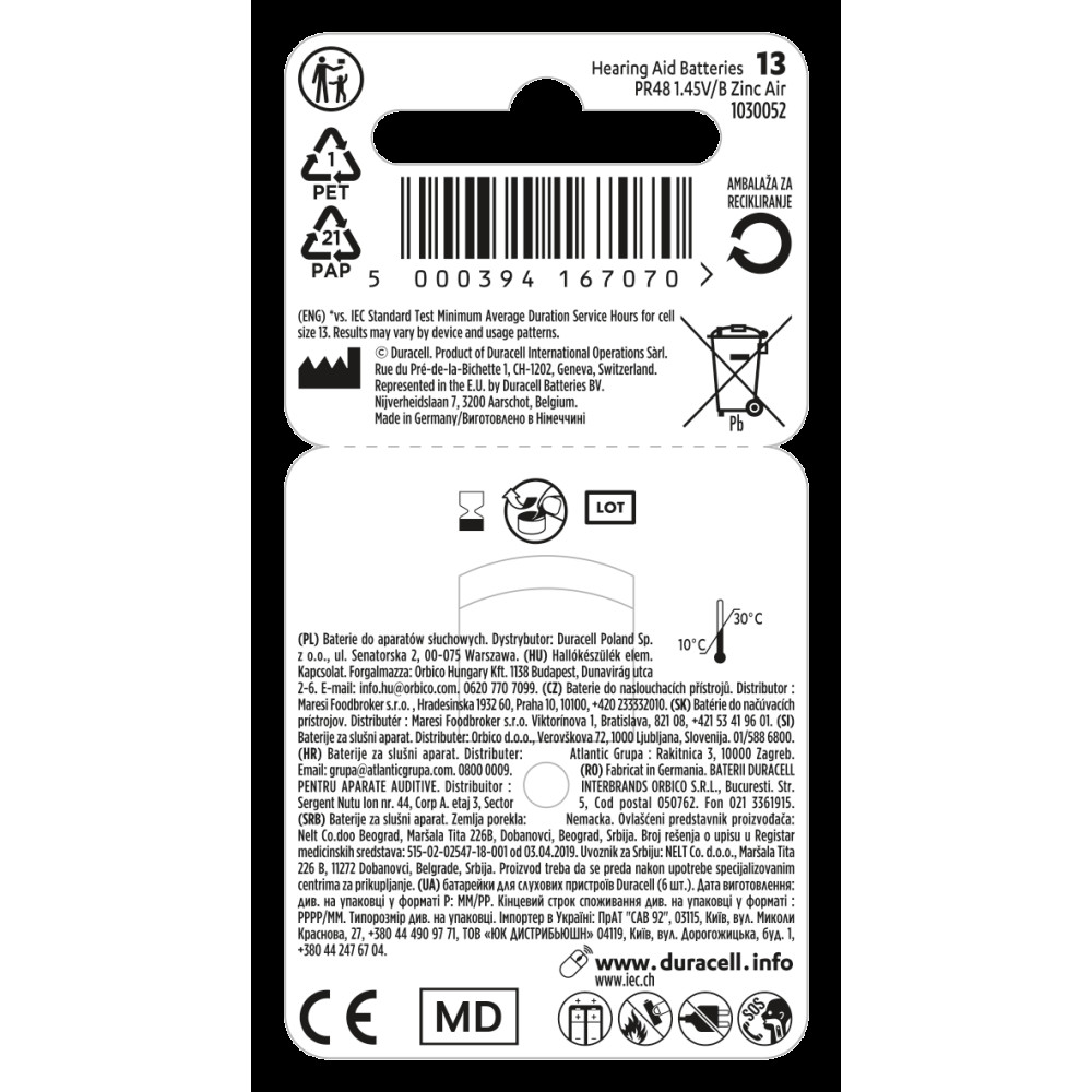 Батарейка DURACELL PR41 size 13 (6шт.) (для слухових апаратів)