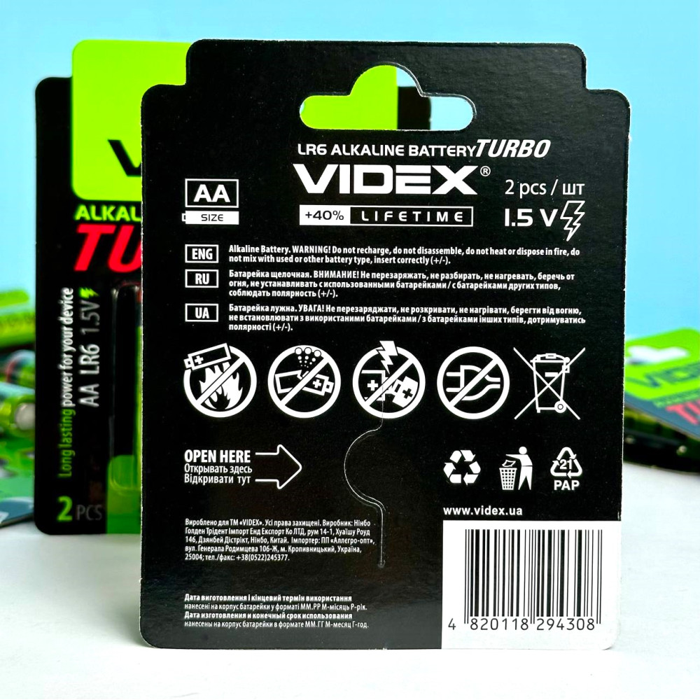 Батарейка VIDEX ALKALINE TURBO AA LR06 1.5V