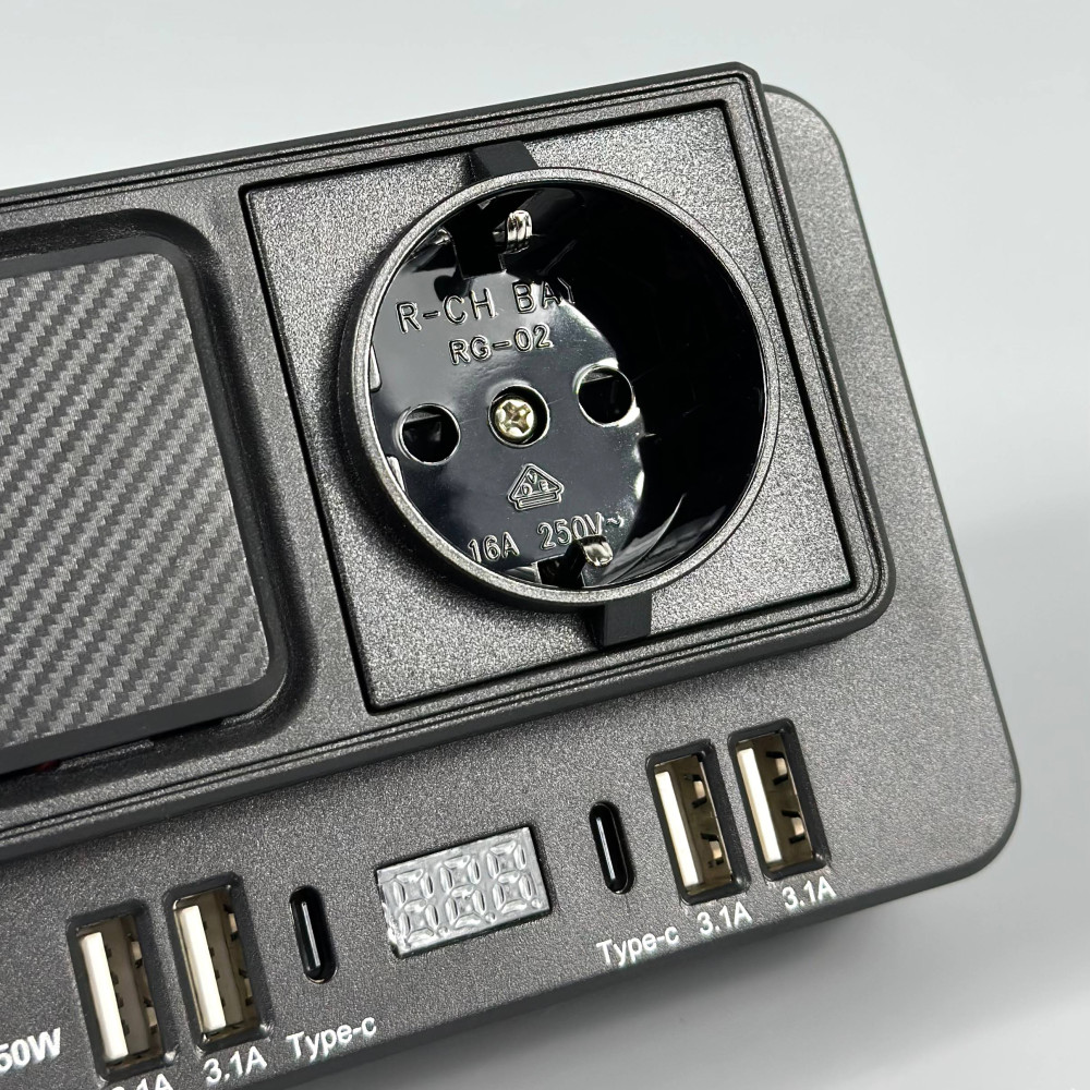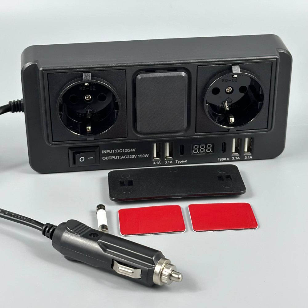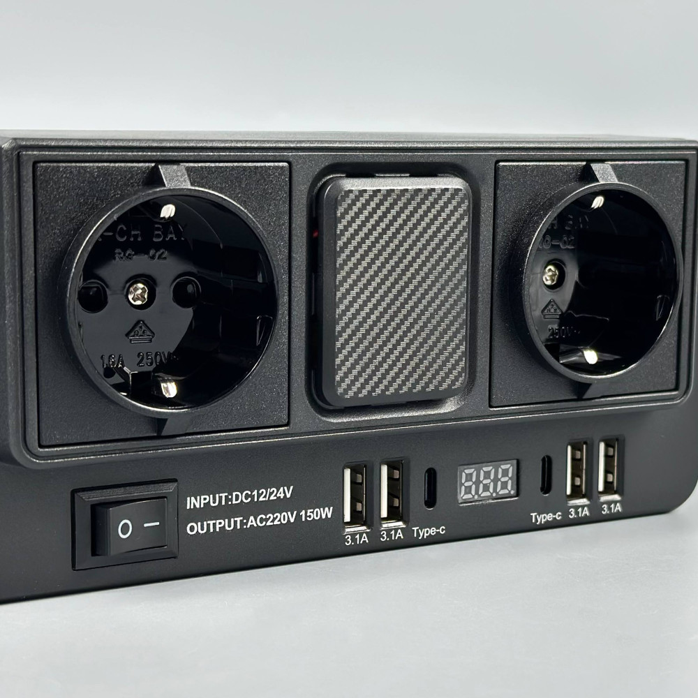 Автомобільний інвертор in-car 1668 150W (AC 2*220V, 4*USB, 2*Type-C, DC12V-24V)