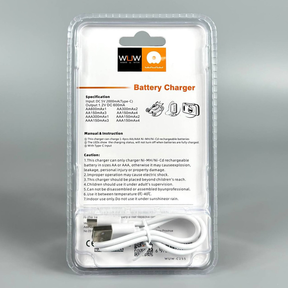 Зарядний пристрій WUW на 4 акумулятори+2*AA