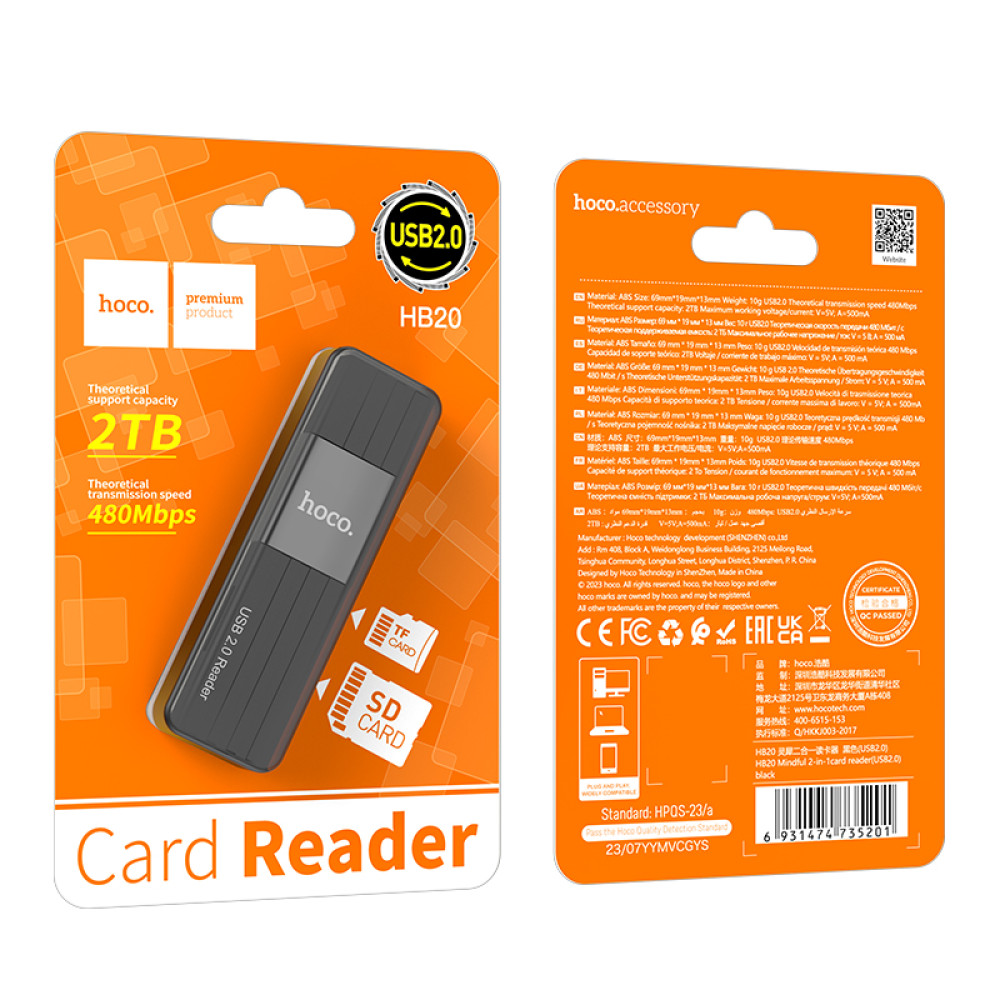 Card Reader Hoco HB20 Mindful 2in1 USB2.0