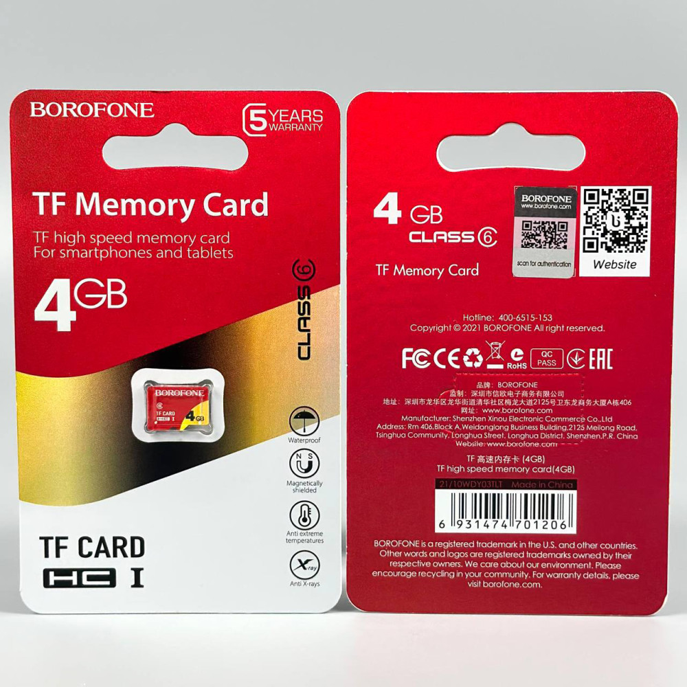 Карта пам'яті MicroSD Borofone 4Gb 6 Class без адаптера