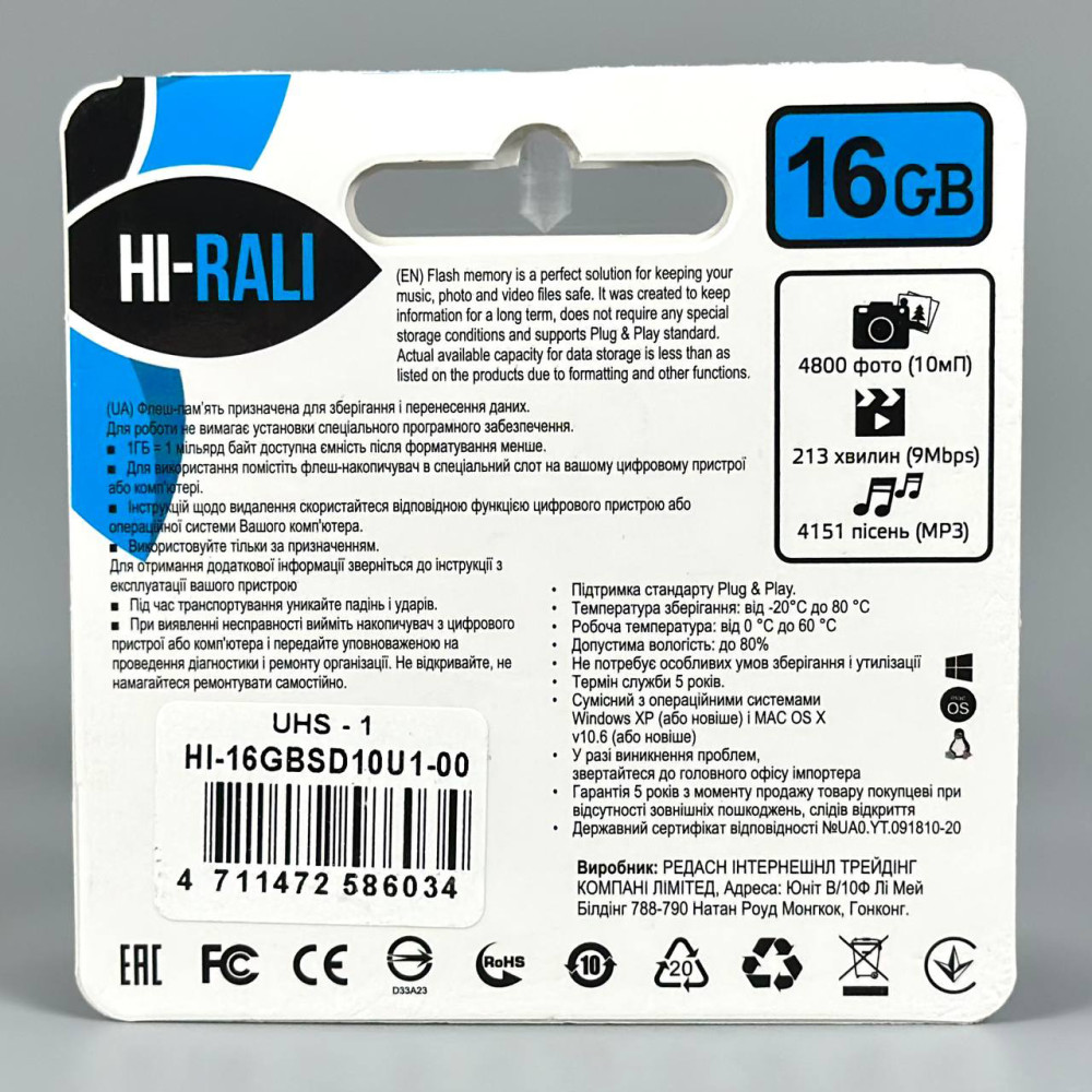 Карта пам'яті Hi-Rali 16GB (UHS-1) 10 Class (без адаптера)