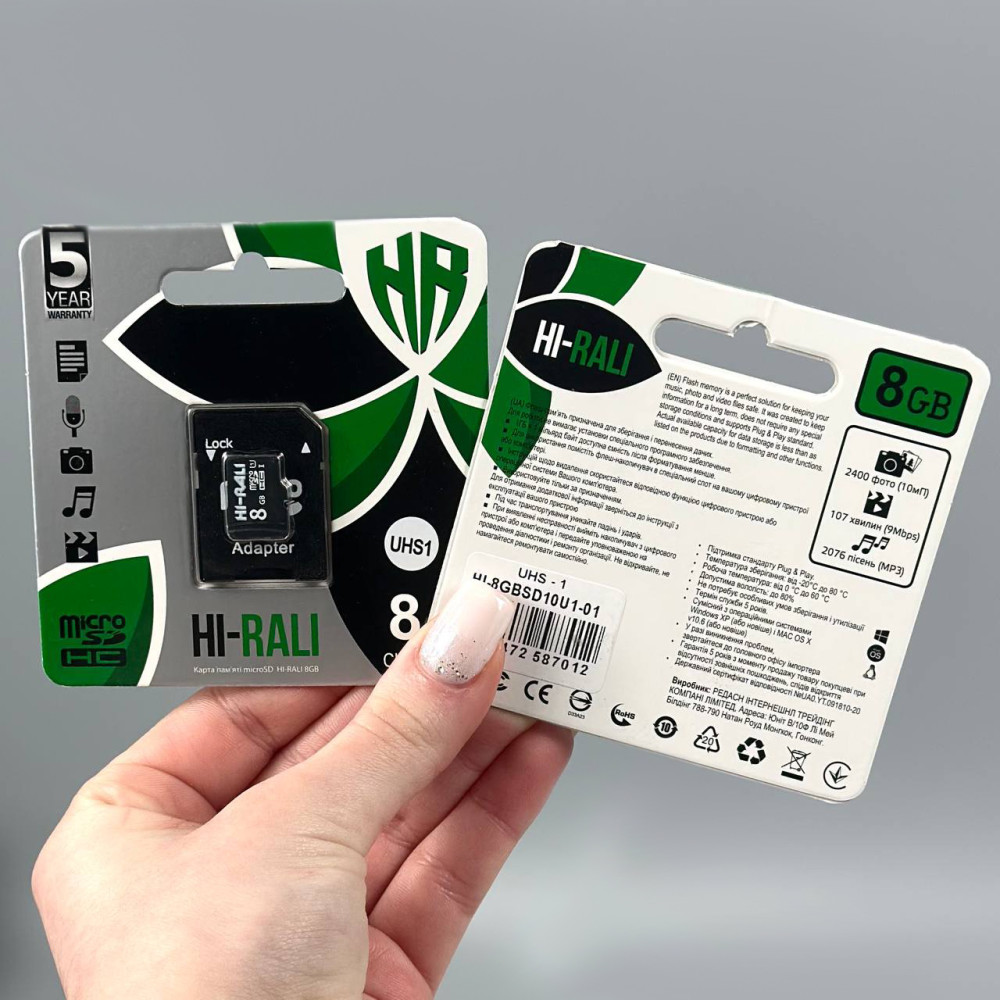 Карта пам'яті Hi-Rali 8Gb (UHS-1) 10 Class (з адаптером SD)