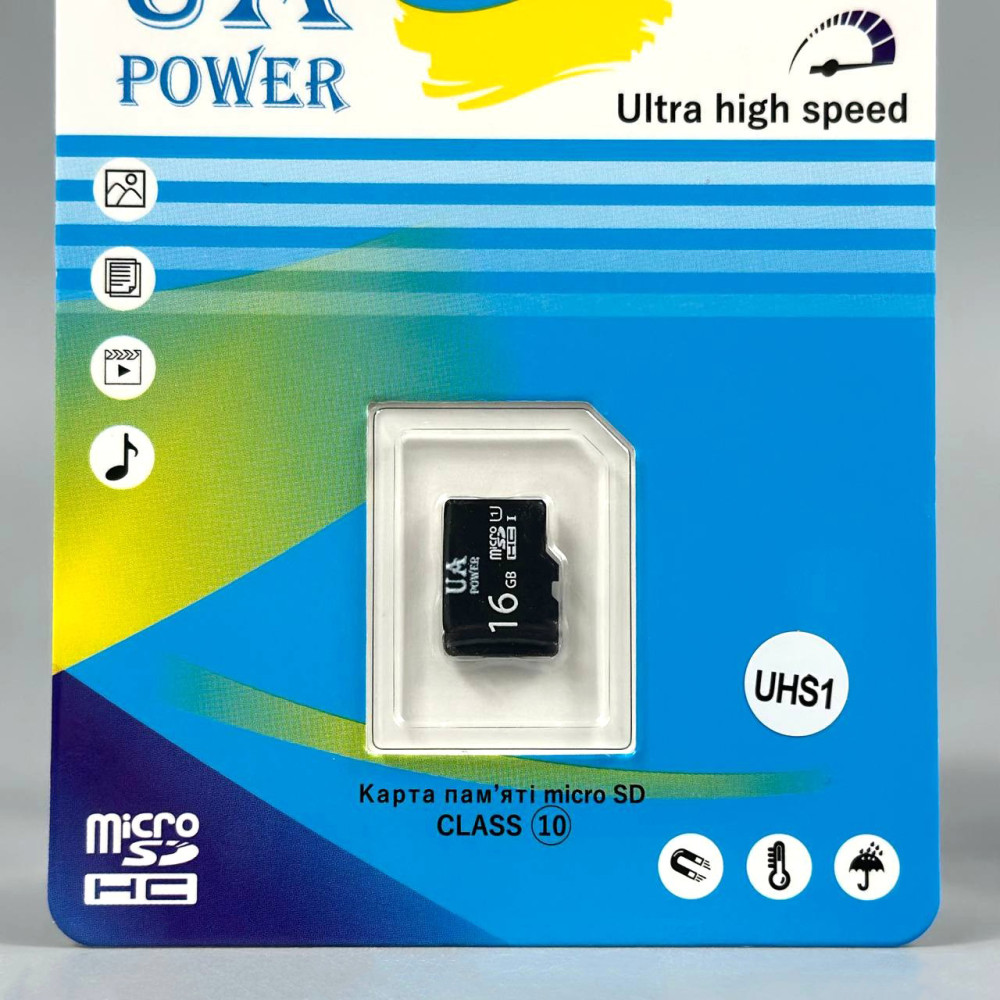 Карта пам'яті UA POWER 16Gb U-1 Ultra high speed Class 10 (без адаптера) (Гарантія на перевірку 1 рік.)