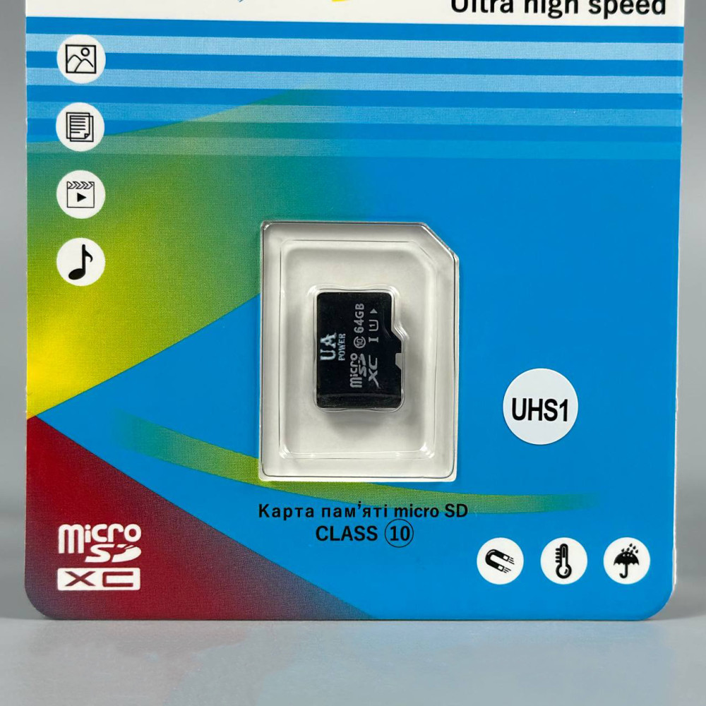 Карта пам'яті UA POWER 64Gb U-1 Ultra high speed Class 10 (без адаптера) (Гарантія на перевірку 1 рік.)