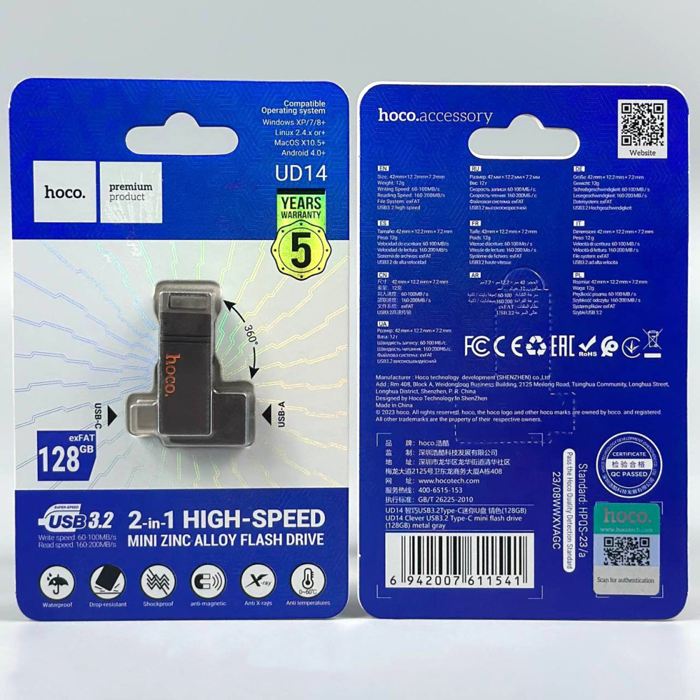 USB флеш Hoco UD14 128GB Clever USB3.2+Type-C Швидкісна