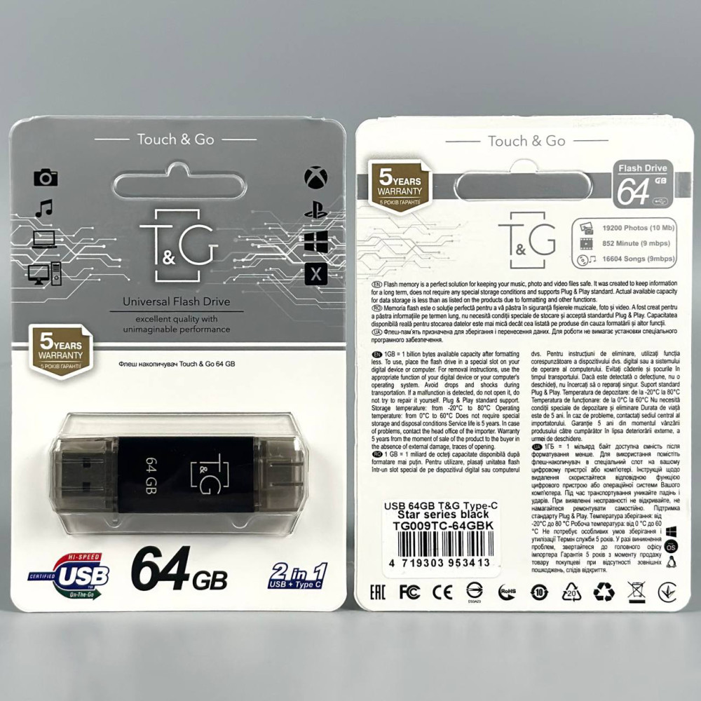 USB флеш T&G 64Gb Star 009 USB+Type-C