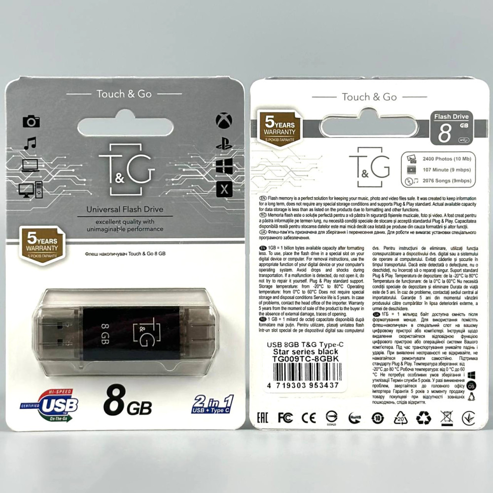 USB флеш T&G 8Gb Star 009 (USB+Type-C)