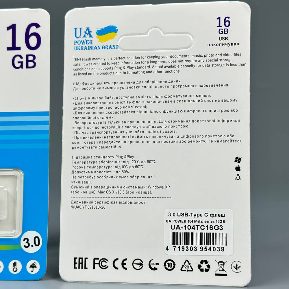 USB флеш UA Power 16Gb Metal USB3.0+Type-C Швидкісна (Гарантія на перевірку 1 рік.)