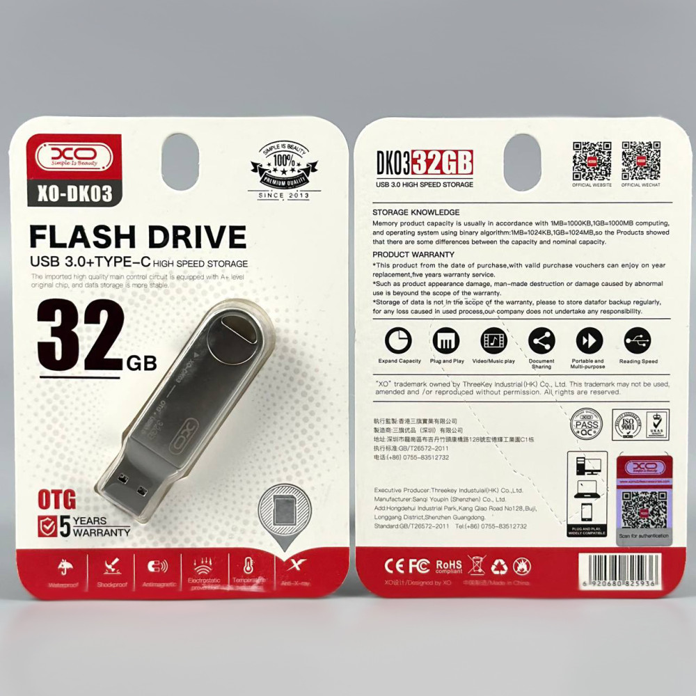 USB флеш XO DK03 32Gb USB3.0+Type-C Швидкісна