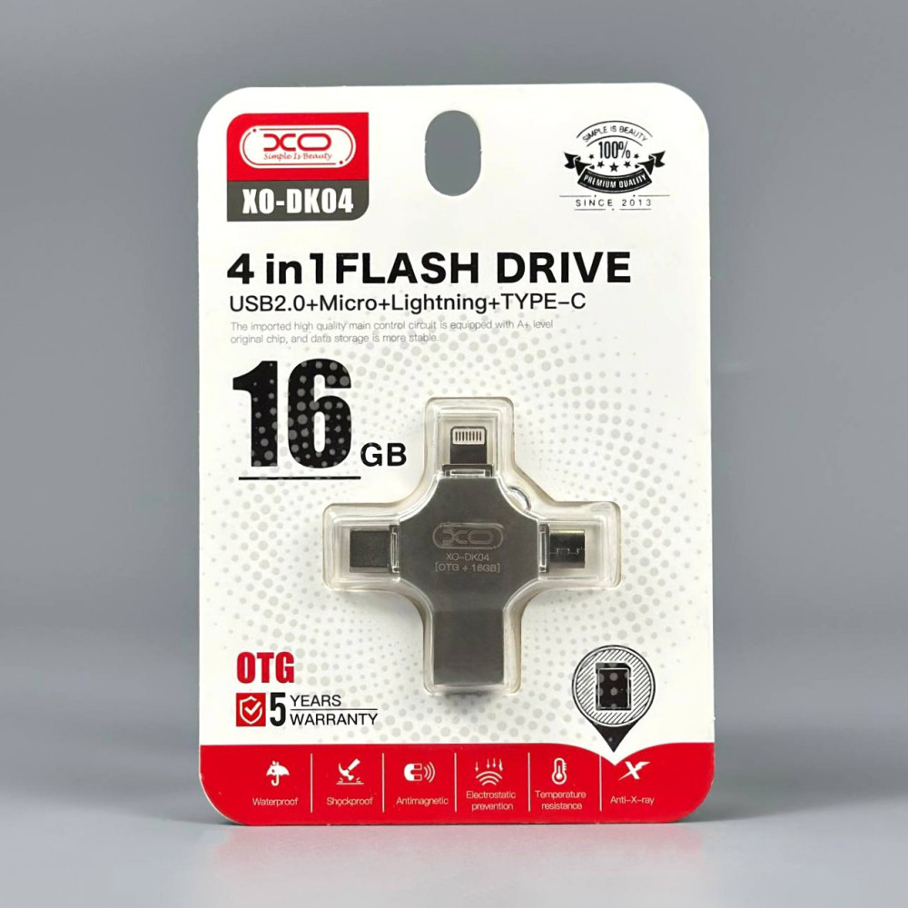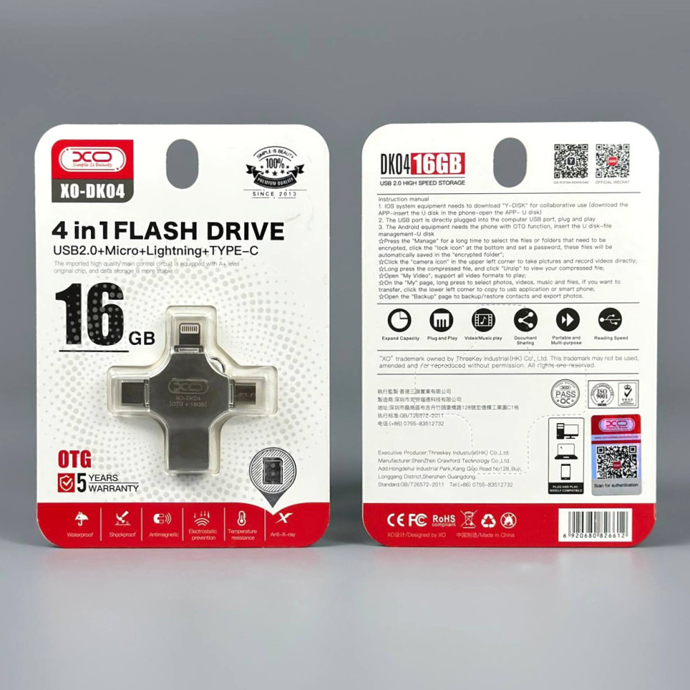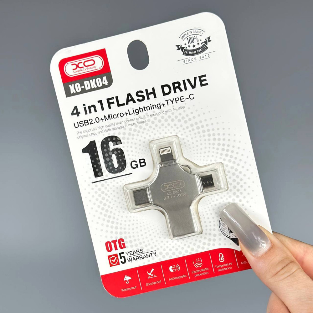 USB флеш XO DK04 16GB 4in1 USB+Micro+Lightning+Type-C USB2.0