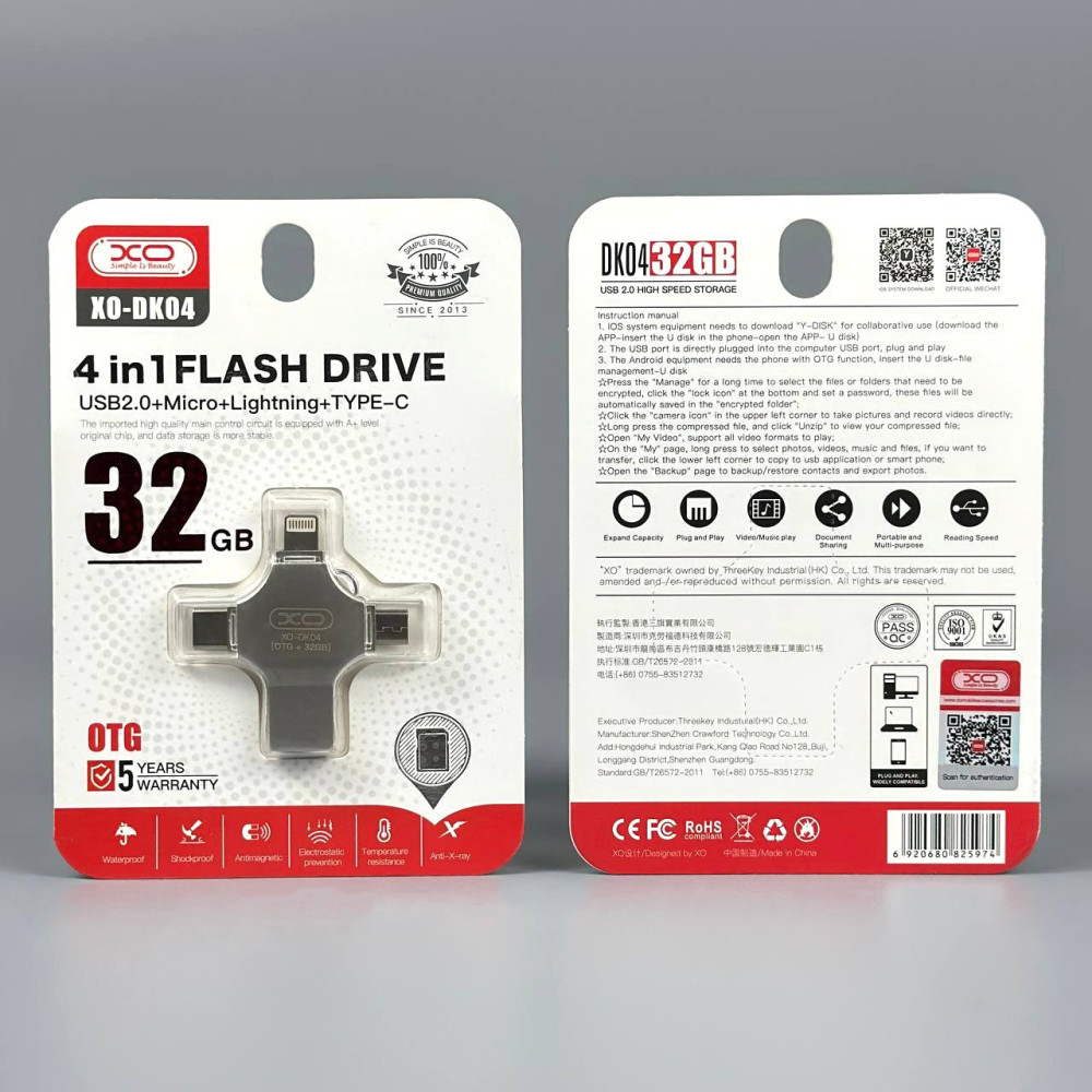 USB флеш XO DK04 32GB 4in1 USB2.0+Micro+Lightning+Type-C