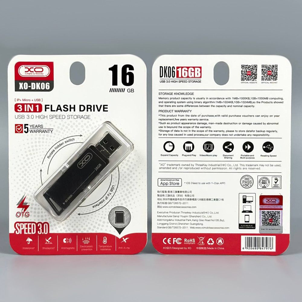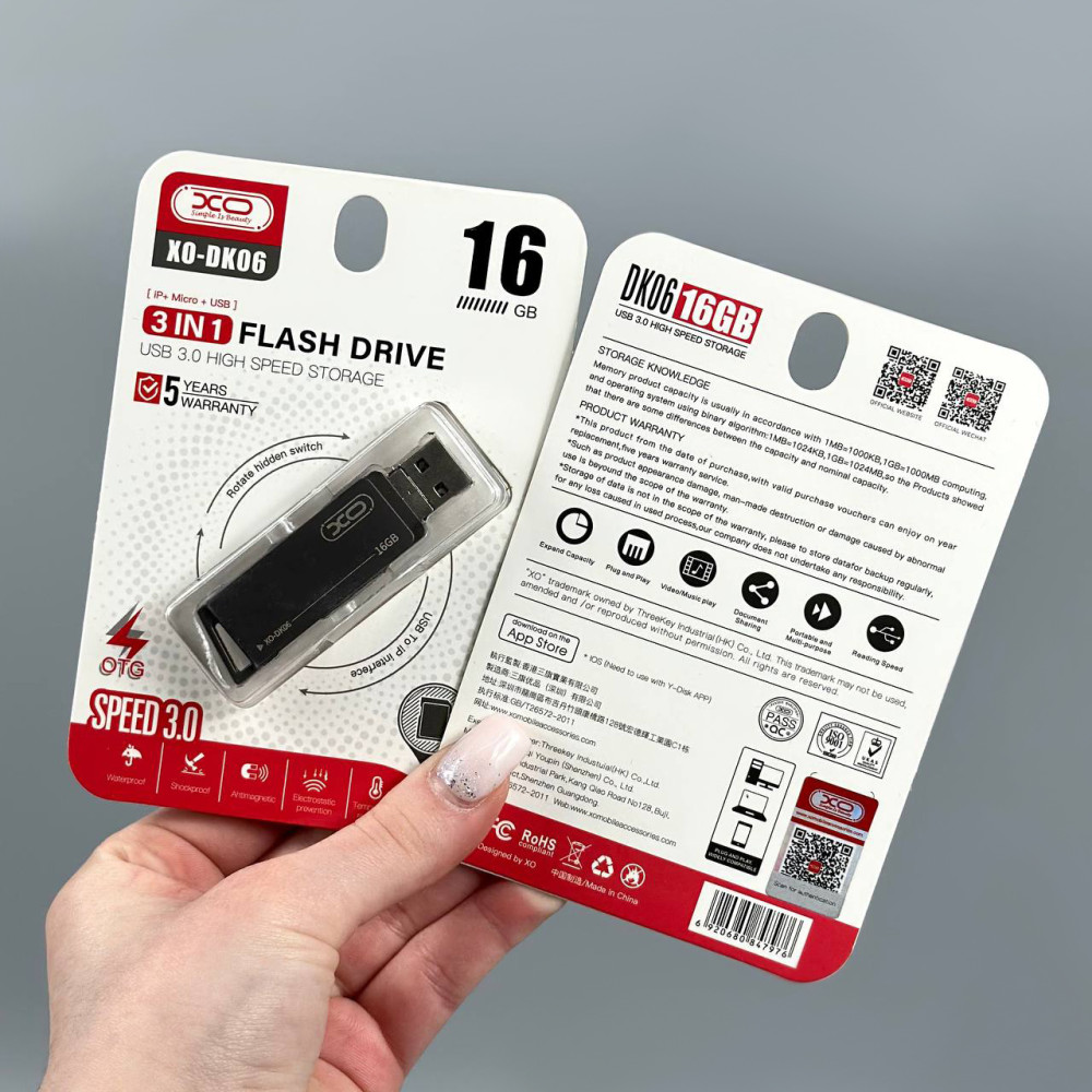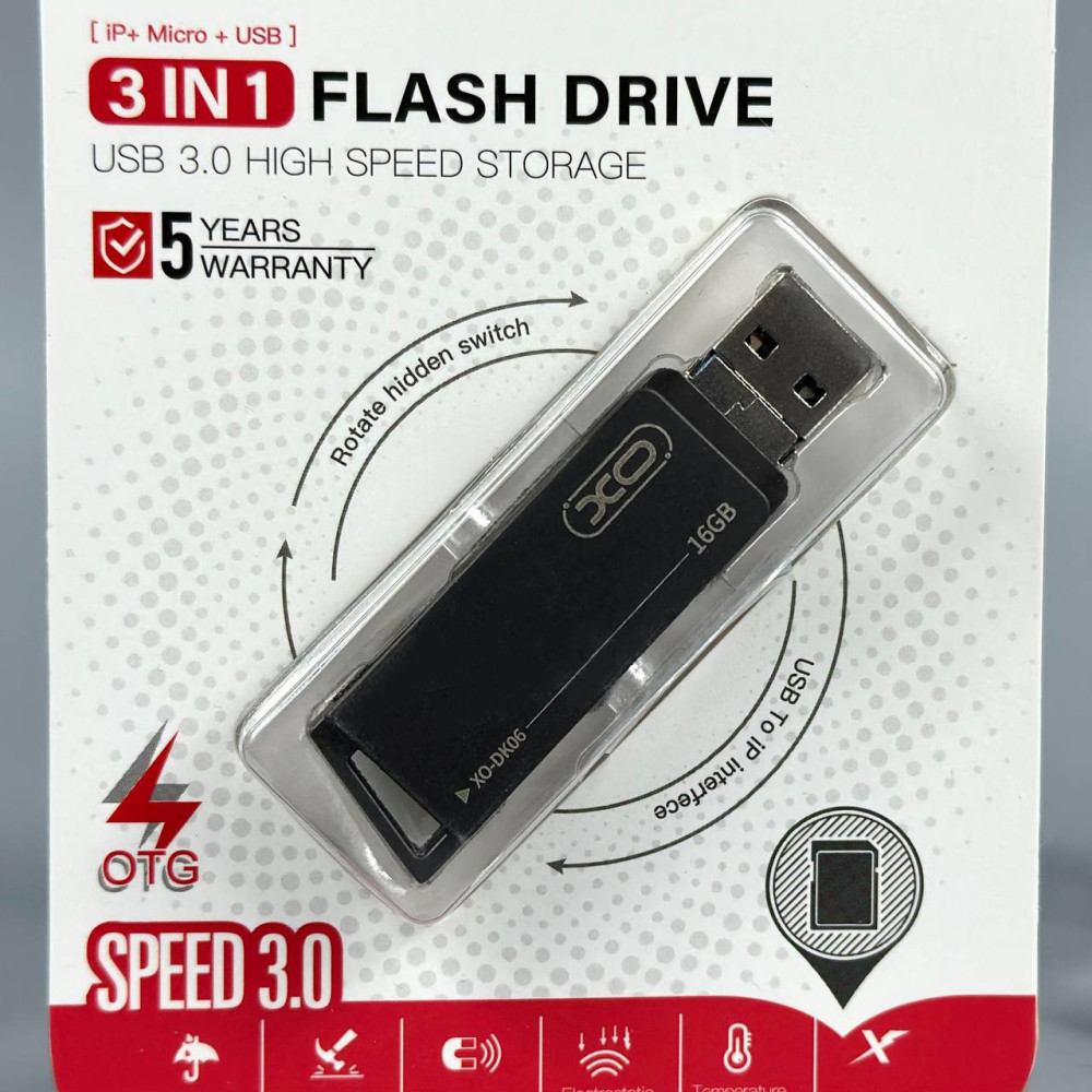 USB флеш XO DK06 16Gb 3in1 USB3.0+Lightning+Micro Швидкісна