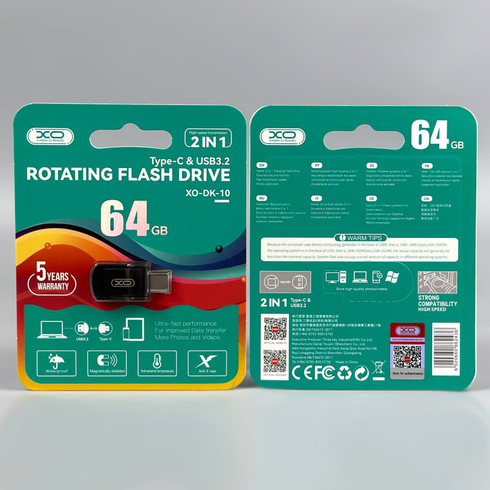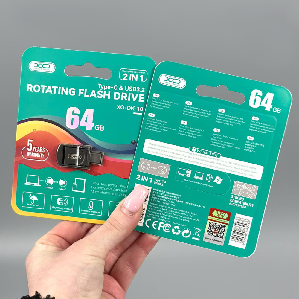 USB флеш XO DK10 64GB USB3.2+Type-C Швидкісна