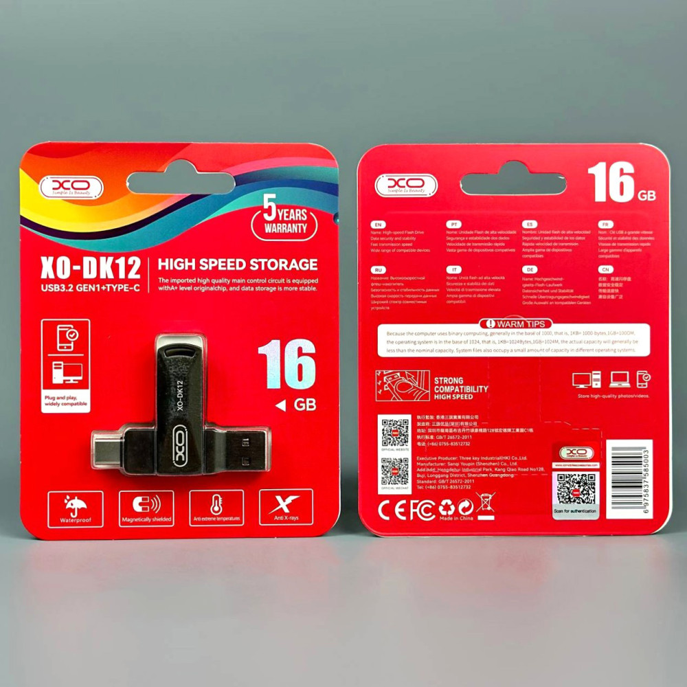 USB флеш XO DK12 16GB USB3.2+Type-C Швидкісна