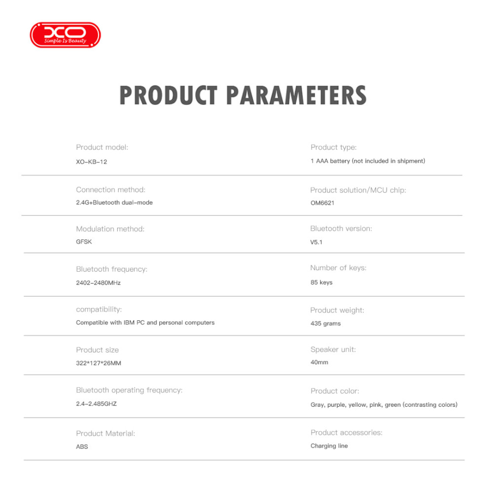 Клавіатура бездротова XO KB-12 (2-режимна, 2.4G+Bluetooth, 86 клавіш) (з Eng розкладкою)