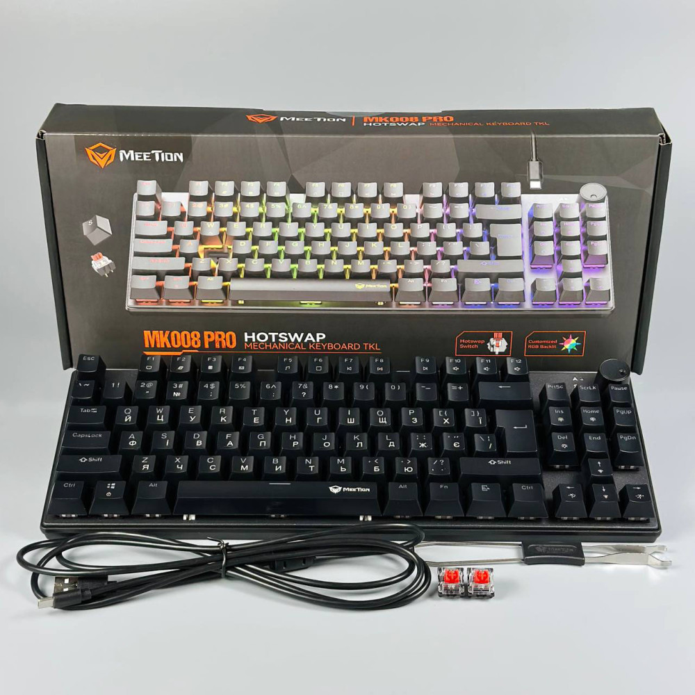 Клавіатура дротова Meetion MK008Pro RGB (з Eng, UA розкладками) (Гарантія на перевірку 6 міс.)