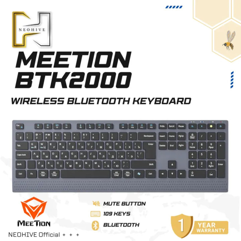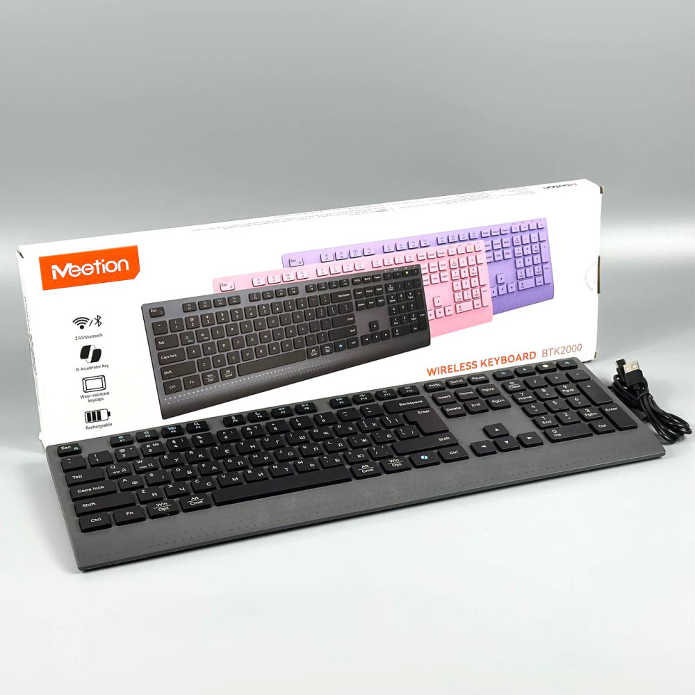 Клавіатура бездротова мембранна Meetion BTK2000 (з Eng, UA розкладками) (Гарантія на перевірку 6 міс.)