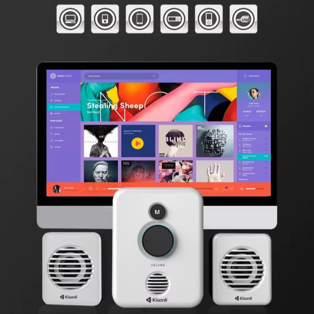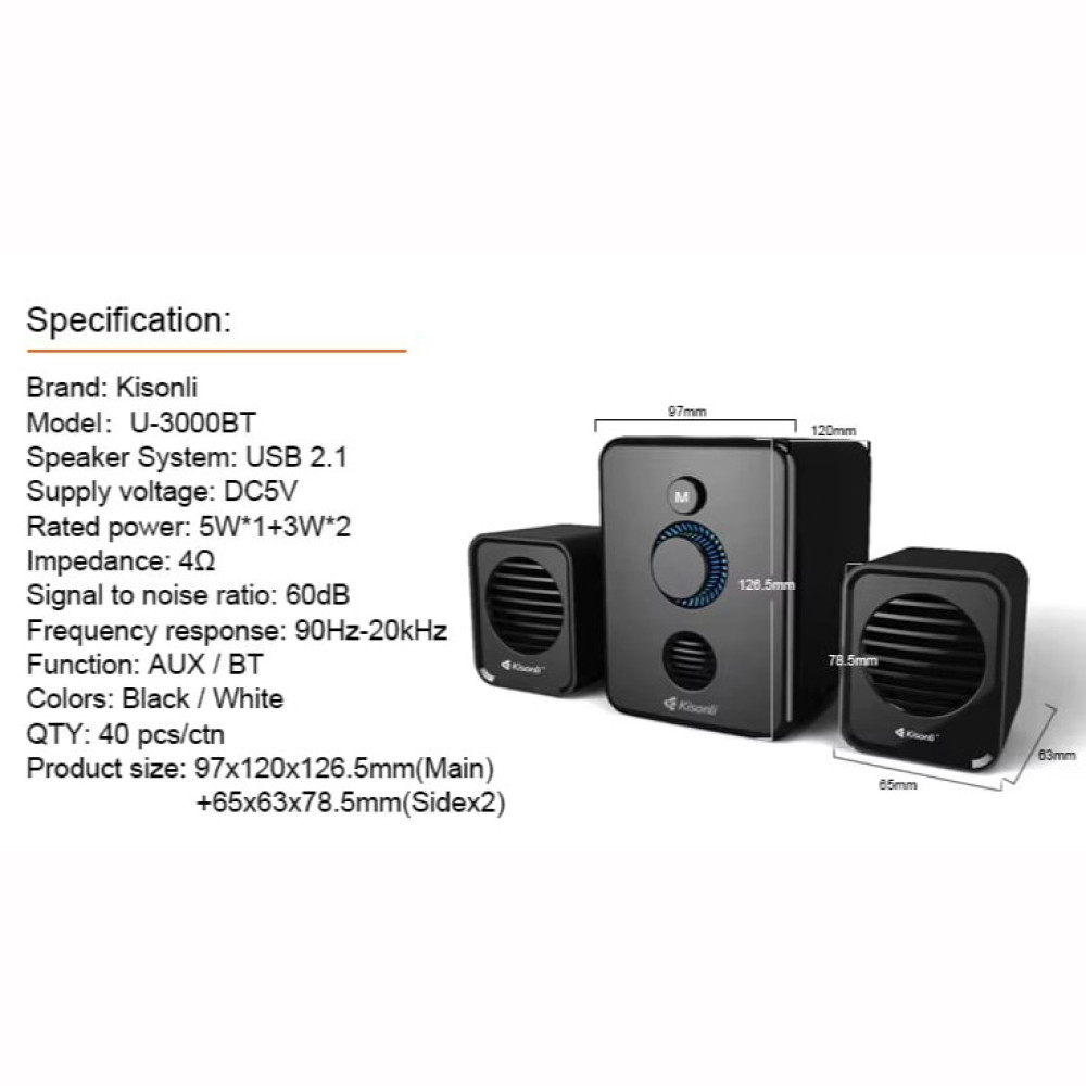 Колонка комп'ютерна Kisonli U-3000BT RGB + Bluetooth акустична система (12,6*12,0*9,7 см)