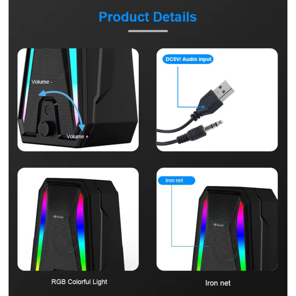 Колонка комп'ютерна Kisonli X10 RGB (USB2.0) (17,4*10,3*9,8 см)