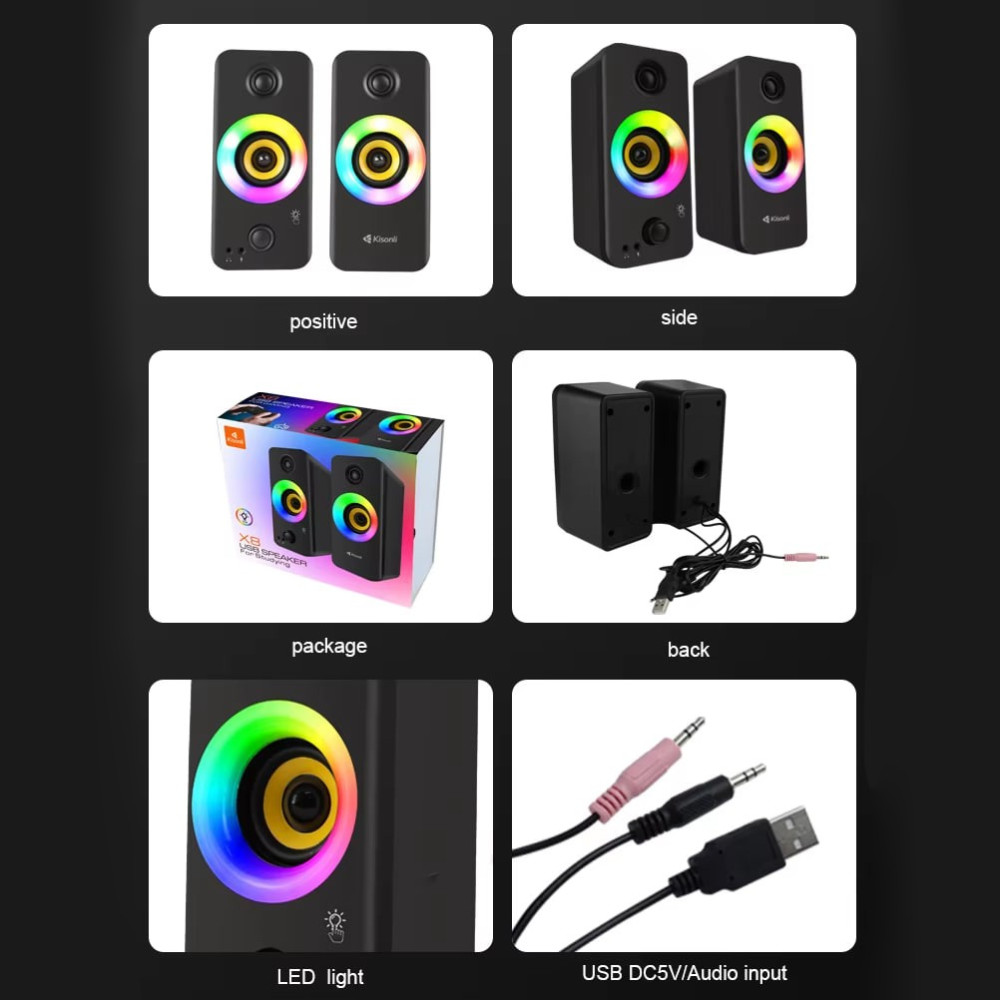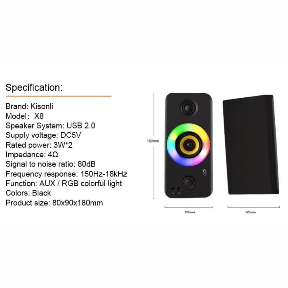 Колонка комп'ютерна Kisonli X8 RGB (18,0*9,0*8,0 см)