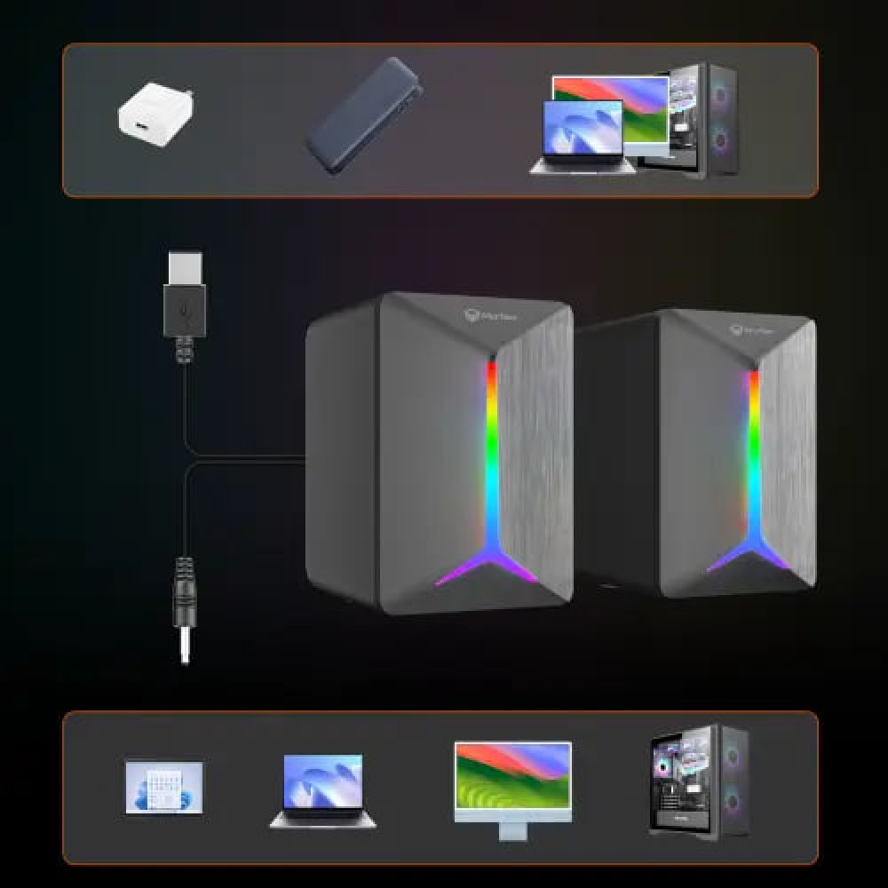 Колонка комп'ютерна Meetion SP2011 3.5mm+USB, 3W*2, RGB (6,7*7,9*9,8 см) (Гарантія на перевірку 6 міс.)