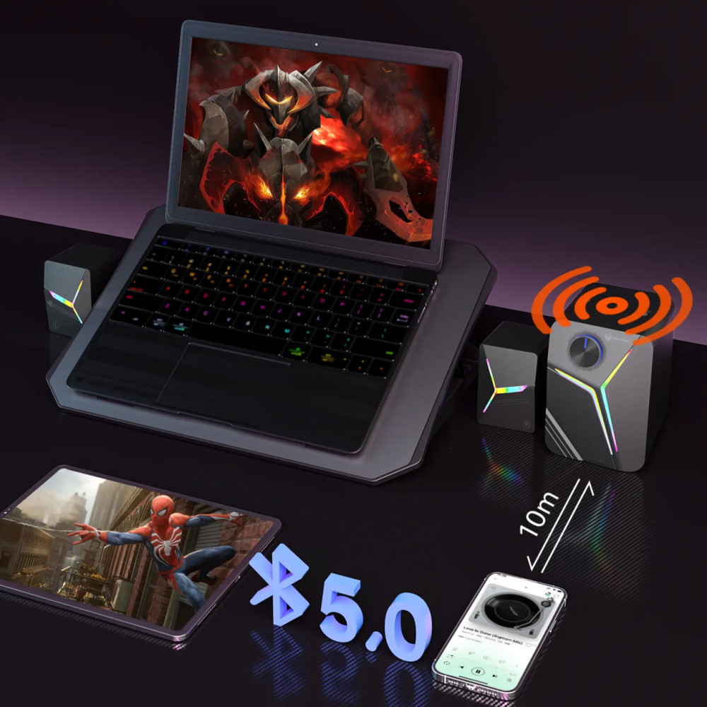 Колонка комп'ютерна Meetion SP2111 Bluetooth+3.5mm+USB, 15W, RGB (13,0*9,6*10,7 см) (Гарантія на перевірку 6 міс.)
