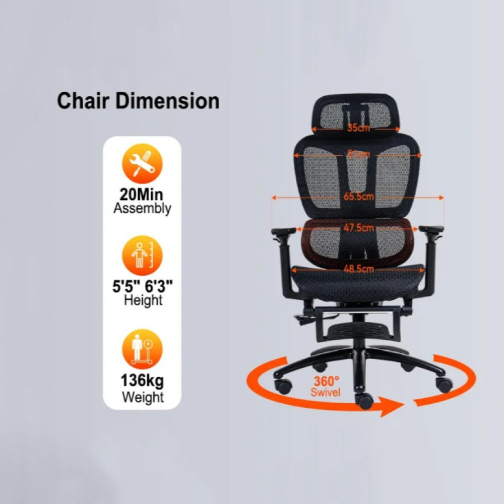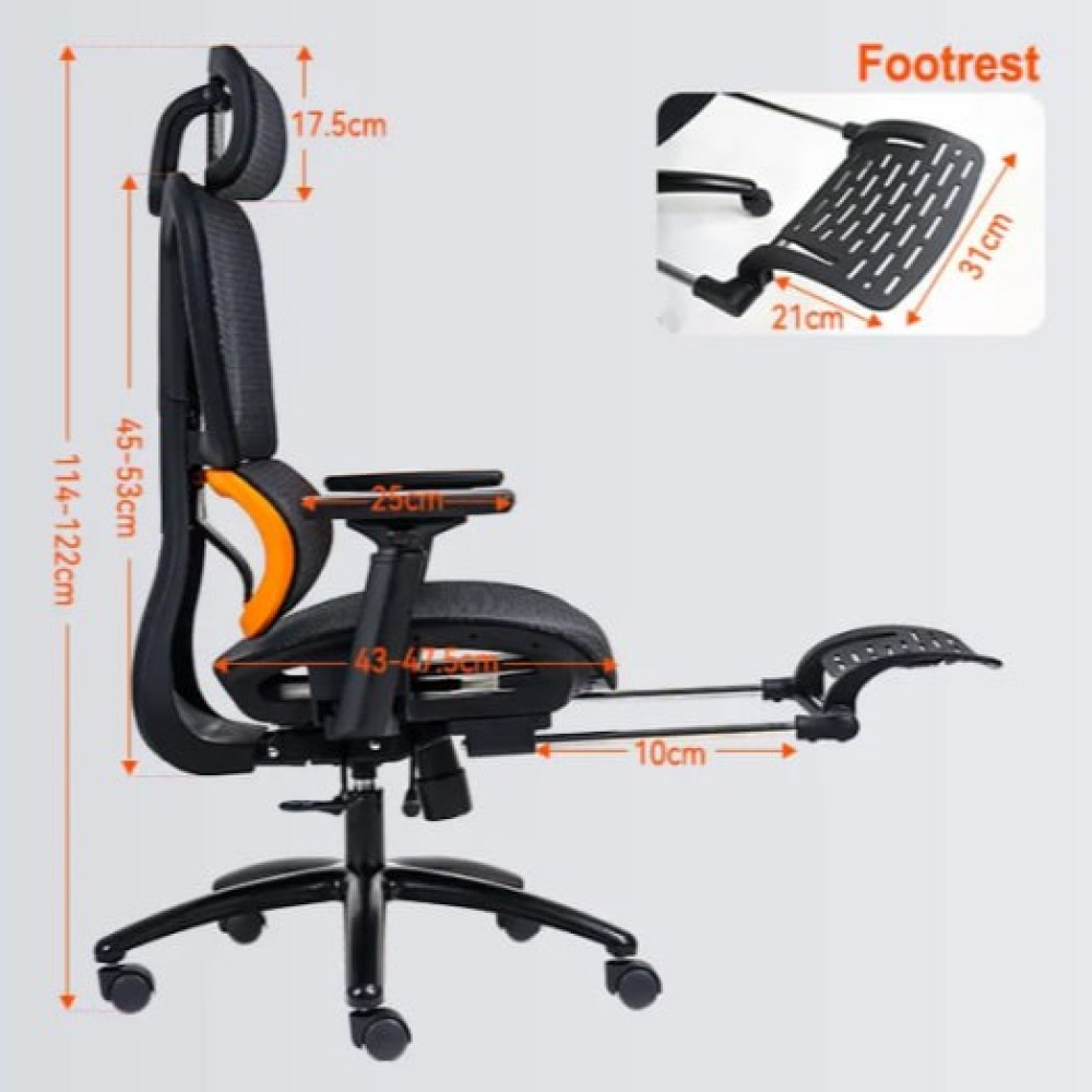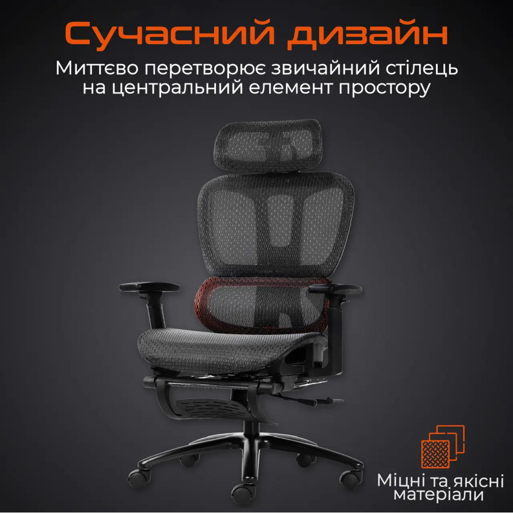 - Інтегрована підставка для ніг: Зручна підставка для ніг дозволяє максимально розслабитися після довгих сесій.