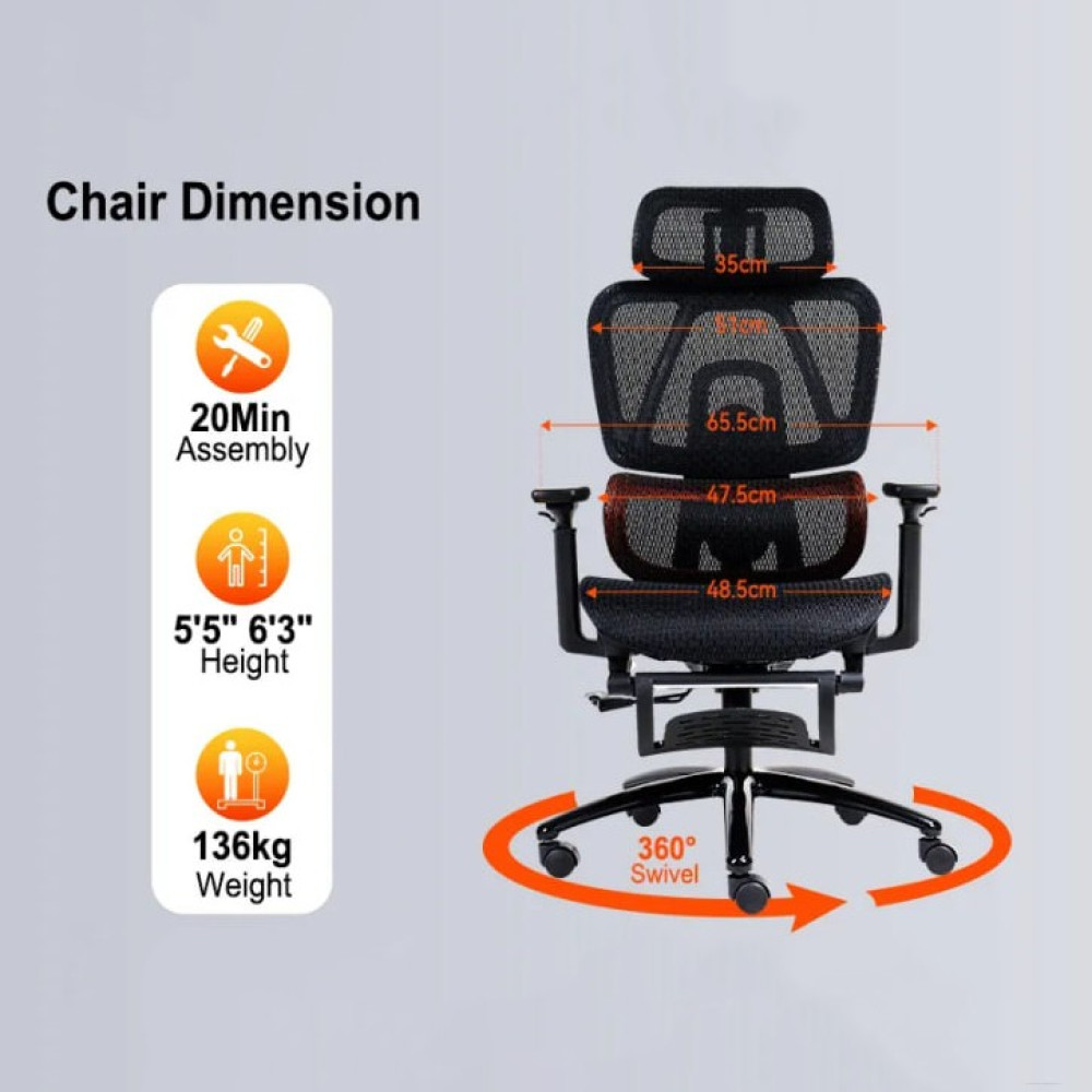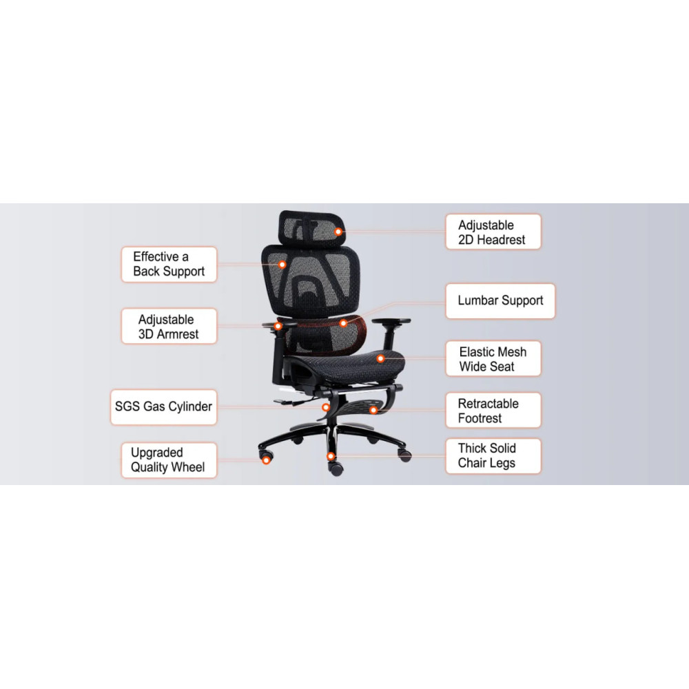 - Інтегрована підставка для ніг: Зручна підставка для ніг дозволяє максимально розслабитися після довгих сесій.