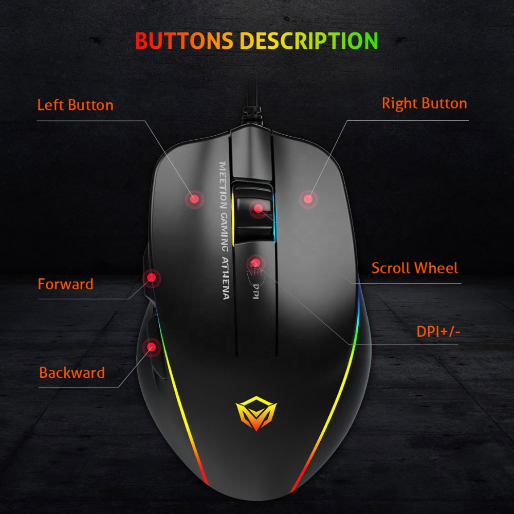 Мишка Games дротова Meetion GM23 2023 RGB 7 Keys, 12800dpi