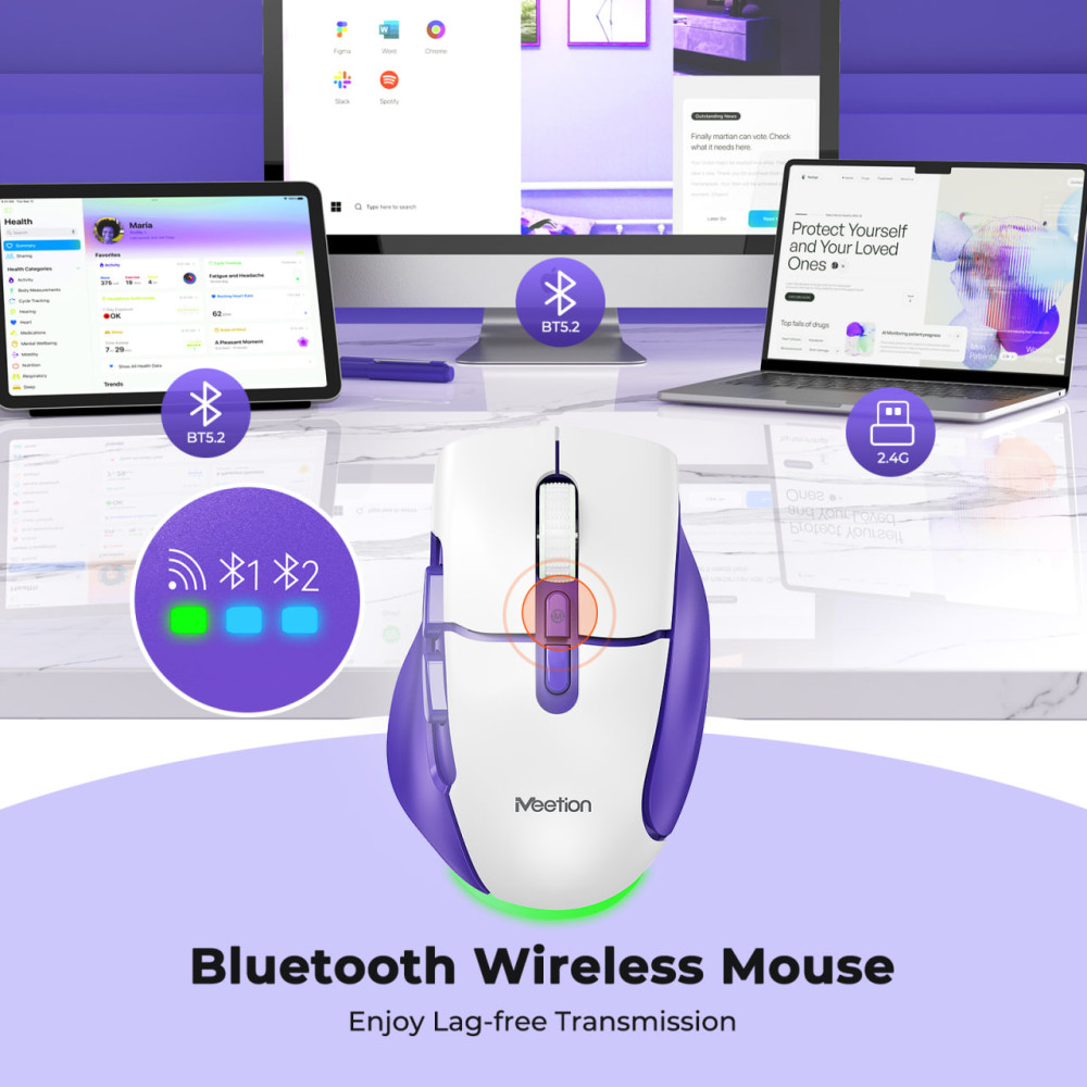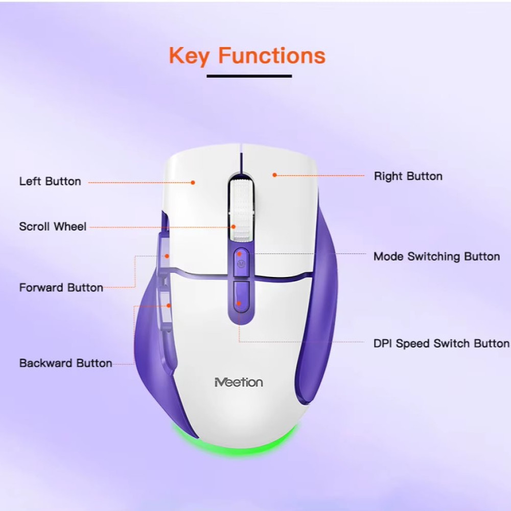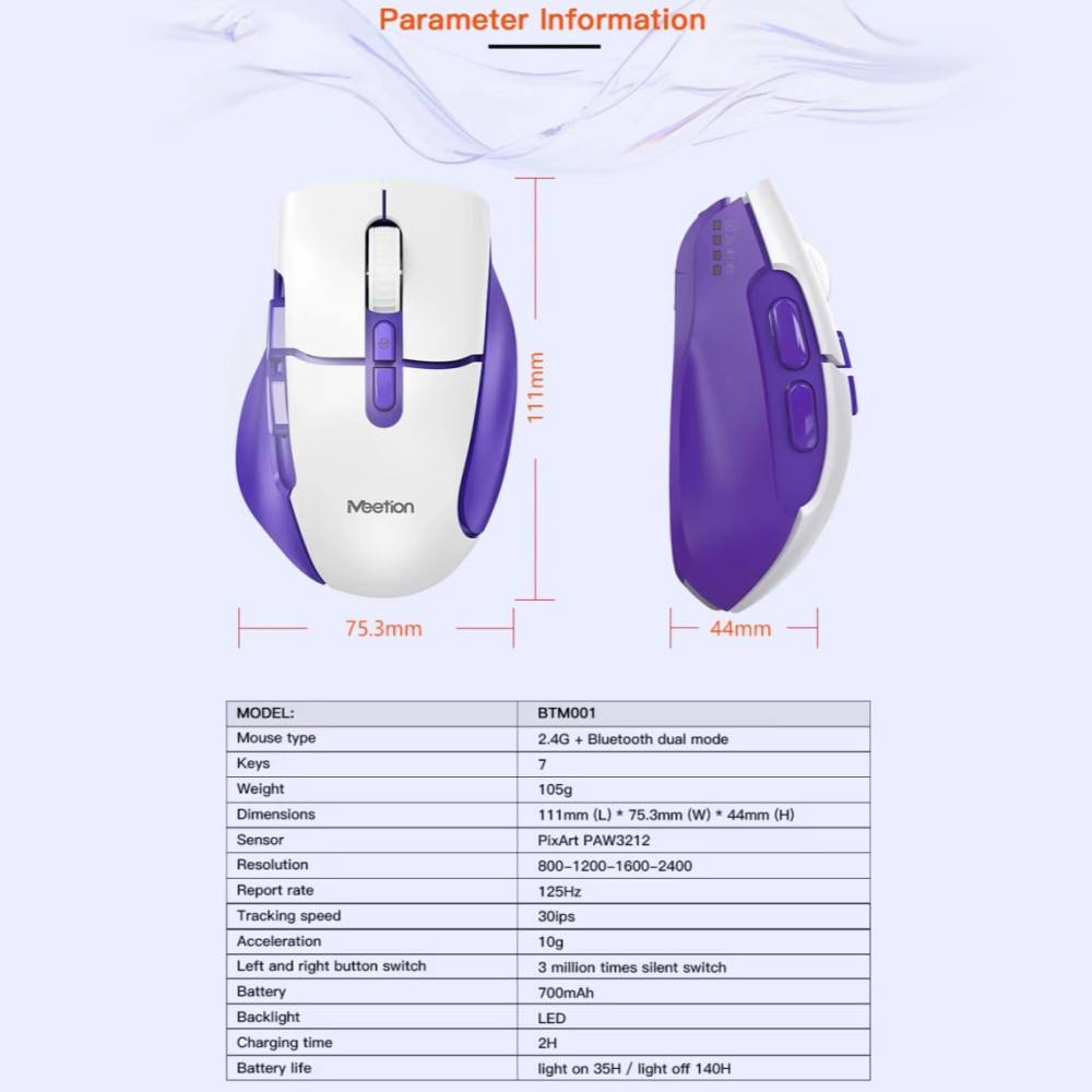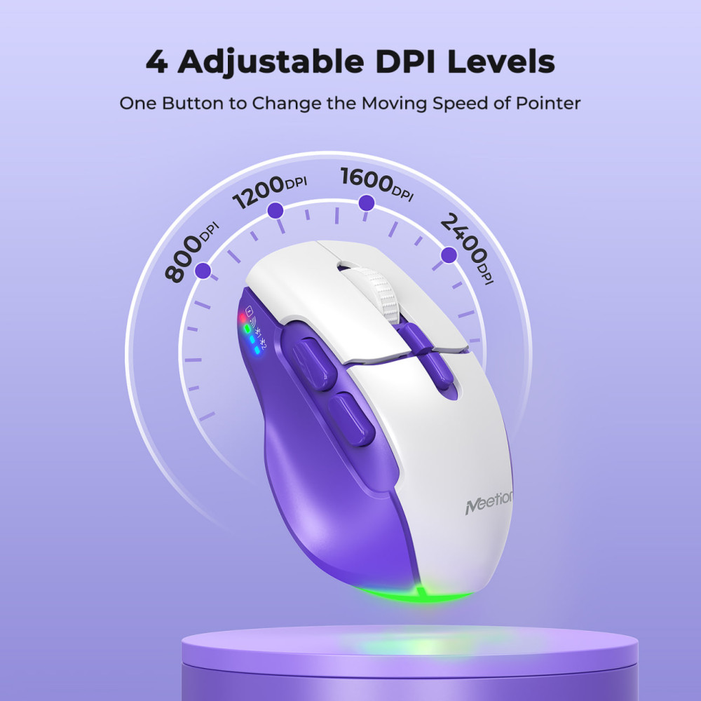 Мишка бездротова Meetion BTM001 RGB 7keys, 2400dpi (Connector: Bluetooth+2.4G USB)