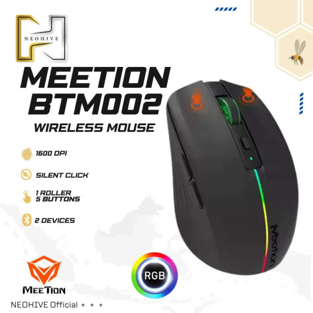 Мишка бездротова Meetion BTM002 RGB 6keys, Type-C (Connector: Bluetooth+2.4G USB)