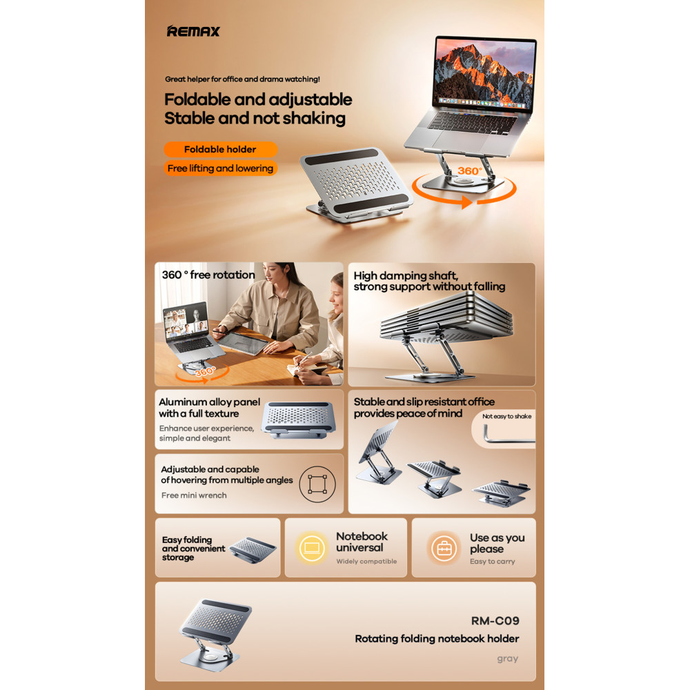 Настільна підставка Remax RM-C09 для ноутбука Rotating folding