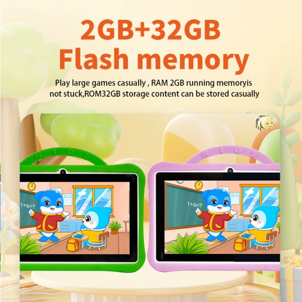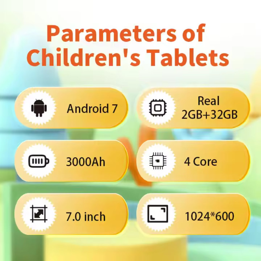Дитячий планшет із діагоналлю екрана 7 дюймів та HD-роздільною здатністю забезпечує яскраве та чітке зображення для ігор, навчання та розваг. Оснащений подвійною камерою (2 МП фронтальна та 5 МП задня) для фотографій і відеодзвінків. Працює на Android 13.0 з потужним процесором AI, що забезпечує швидку та плавну роботу.