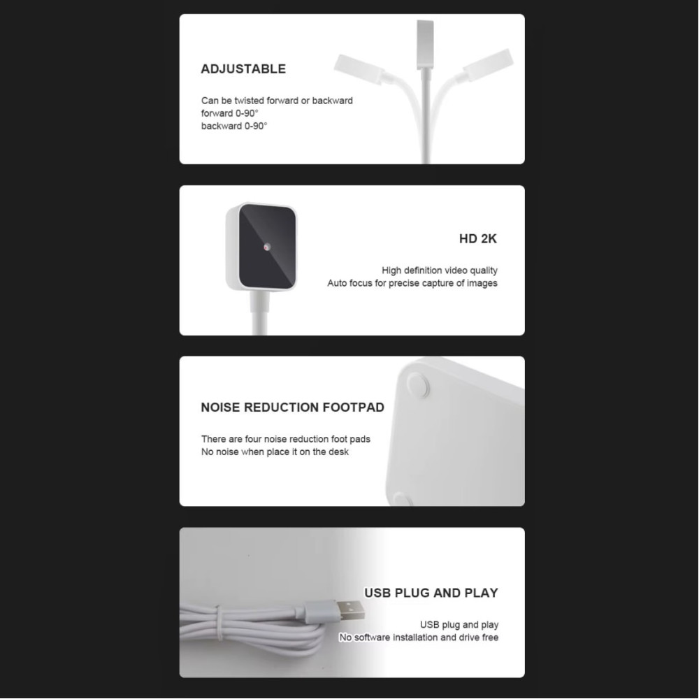 Web camera Kisonli D1 Standing 2K, 5P (2592*1944) вбудований мікрофон, auto-focusing, від USB (Гарантія на перевірку 6 міс)