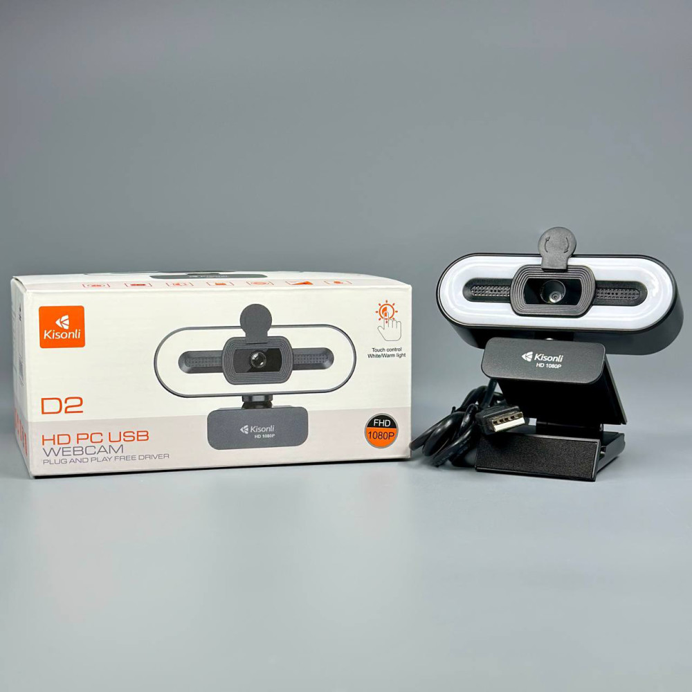 Web camera Kisonli D2 1080P, 5P (1920*1018) with Led, вбудований мікрофон, від USB (Гарантія на перевірку 6 міс)