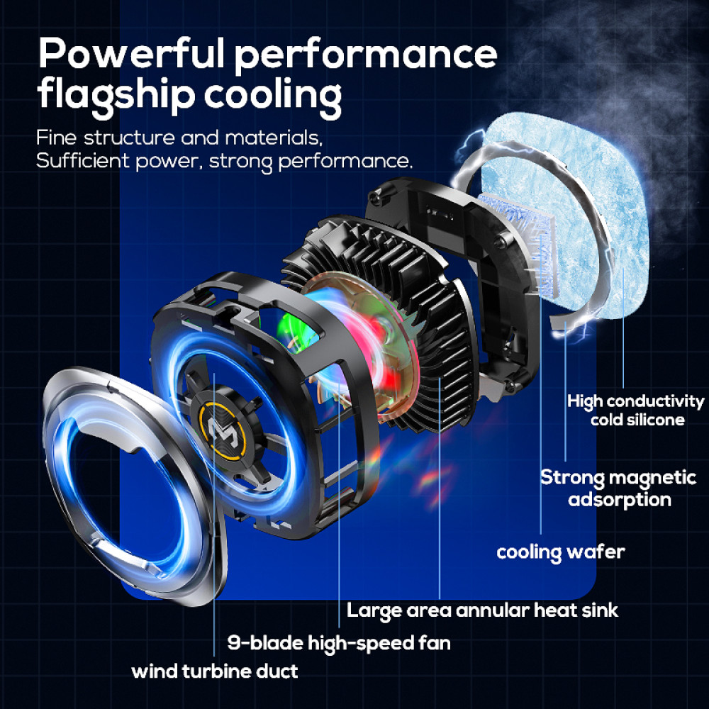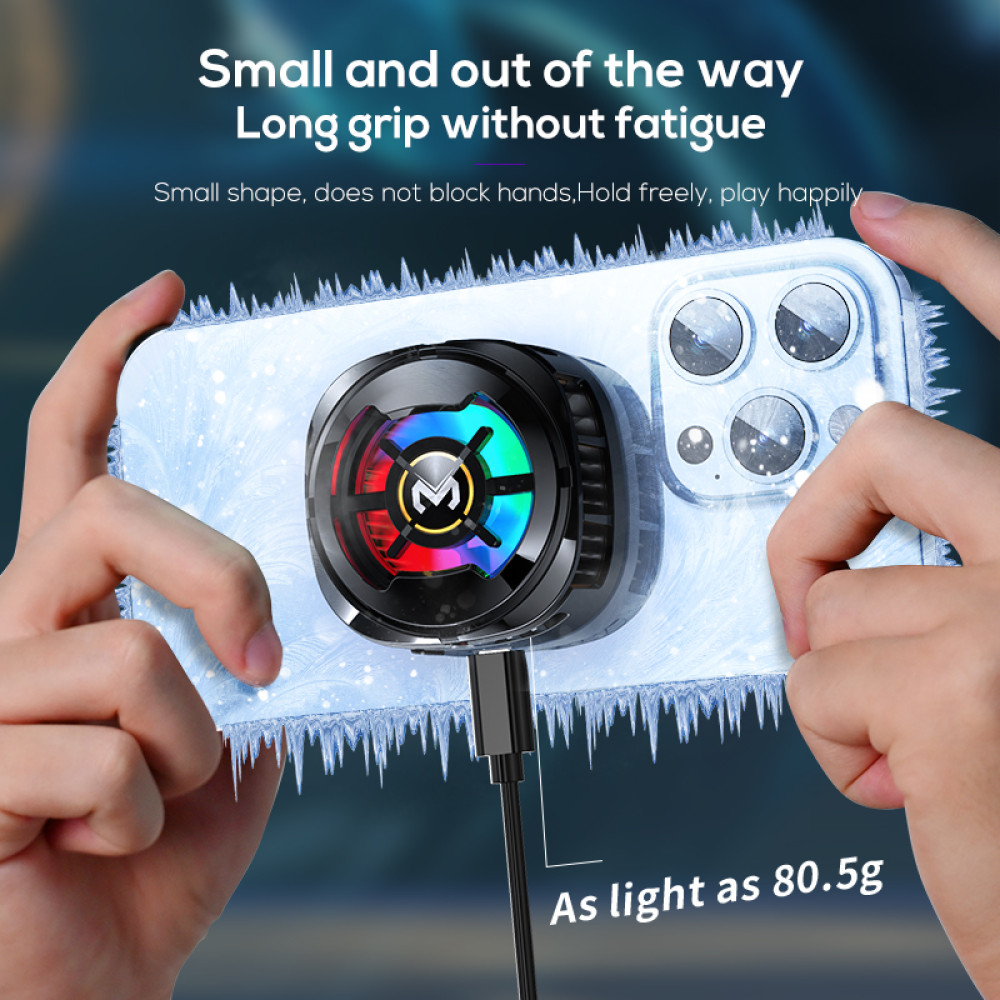 Завдяки компактному дизайну і невагомості (всього 70г), кулер не обмежує комфорту в ігровому процесі і не створює надмірного навантаження на руки, звільняючи простір для підключення інших пристроїв, таких як тригери. Цей мобільний кулер для смартфона забезпечує статичне RGB-підсвічування, створюючи приємну атмосферу для шанувальників кіберспорту.