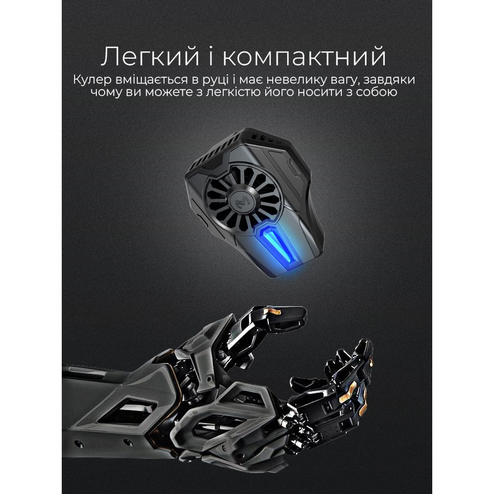 - Кулер універсальний та сумісний з телефонами на платформах iPhone і Android шириною до 85 мм і товщиною до 12 мм, з найкращим результатом на смартфонах з металевою або скляною задньою поверхнею.
