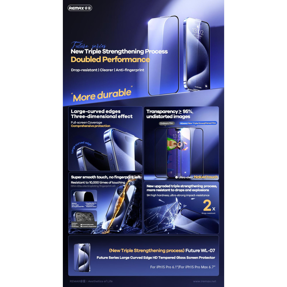 Захисне скло Remax WL-07 Future Large Curved Edge Series iPhone 15 Pro